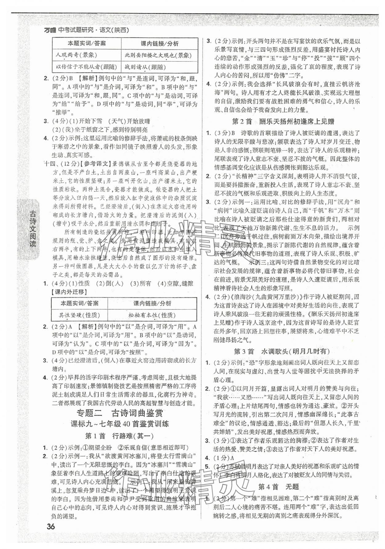 2024年万唯中考试题研究语文陕西专版