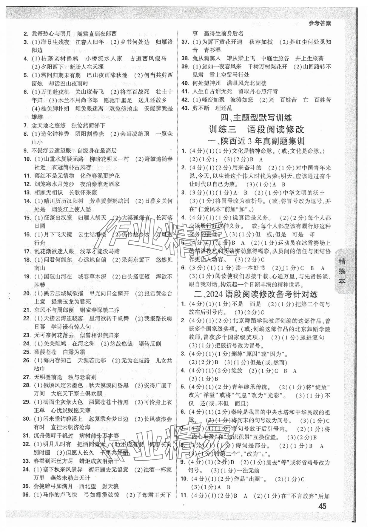 注:目前有些书本章节名称可能整理的还不是很完善,但都是按照顺序排列的,请同学们按照顺序仔细查找。练习册 2024年万唯中考试题研究语文陕西专版 答案主要是用来给同学们做完题方便对答案用的,请勿直接抄袭。