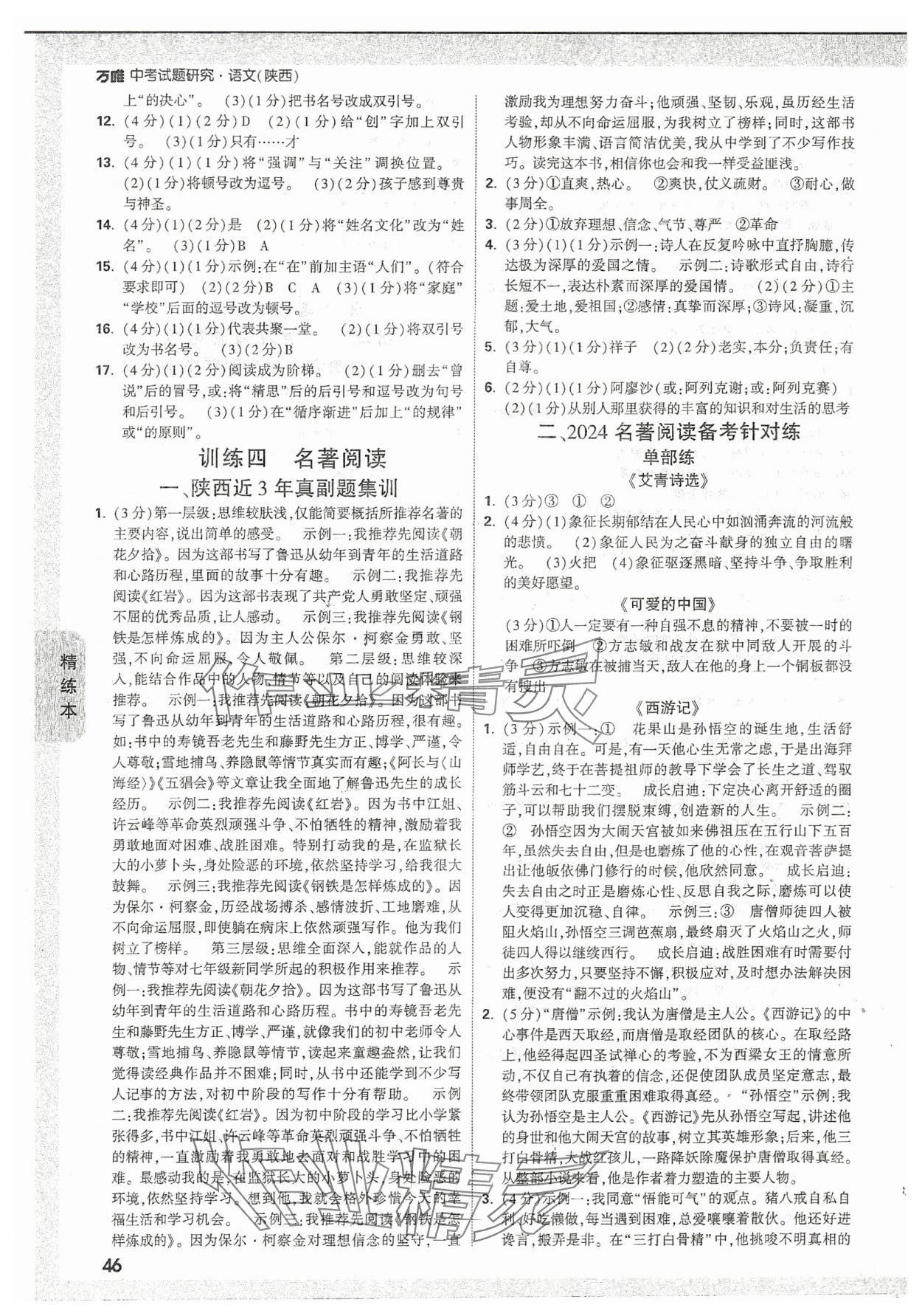 2024年万唯中考试题研究语文陕西专版