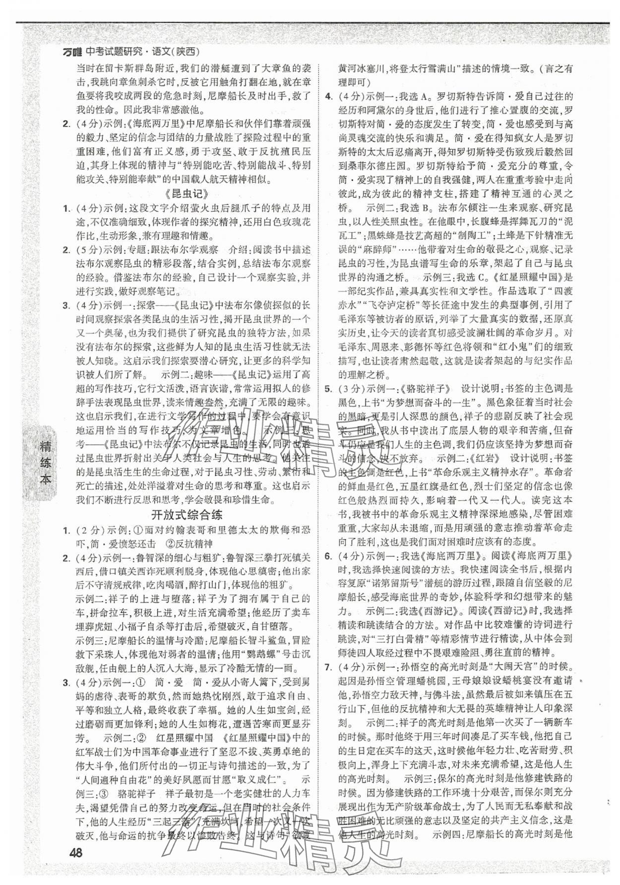 注:目前有些书本章节名称可能整理的还不是很完善,但都是按照顺序排列的,请同学们按照顺序仔细查找。练习册 2024年万唯中考试题研究语文陕西专版 答案主要是用来给同学们做完题方便对答案用的,请勿直接抄袭。