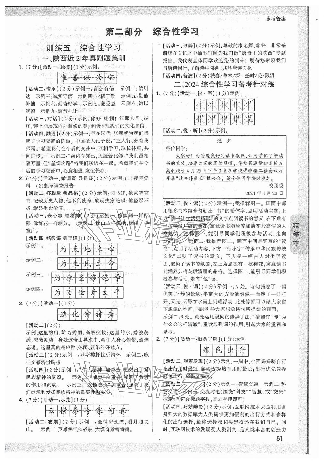 注:目前有些书本章节名称可能整理的还不是很完善,但都是按照顺序排列的,请同学们按照顺序仔细查找。练习册 2024年万唯中考试题研究语文陕西专版 答案主要是用来给同学们做完题方便对答案用的,请勿直接抄袭。