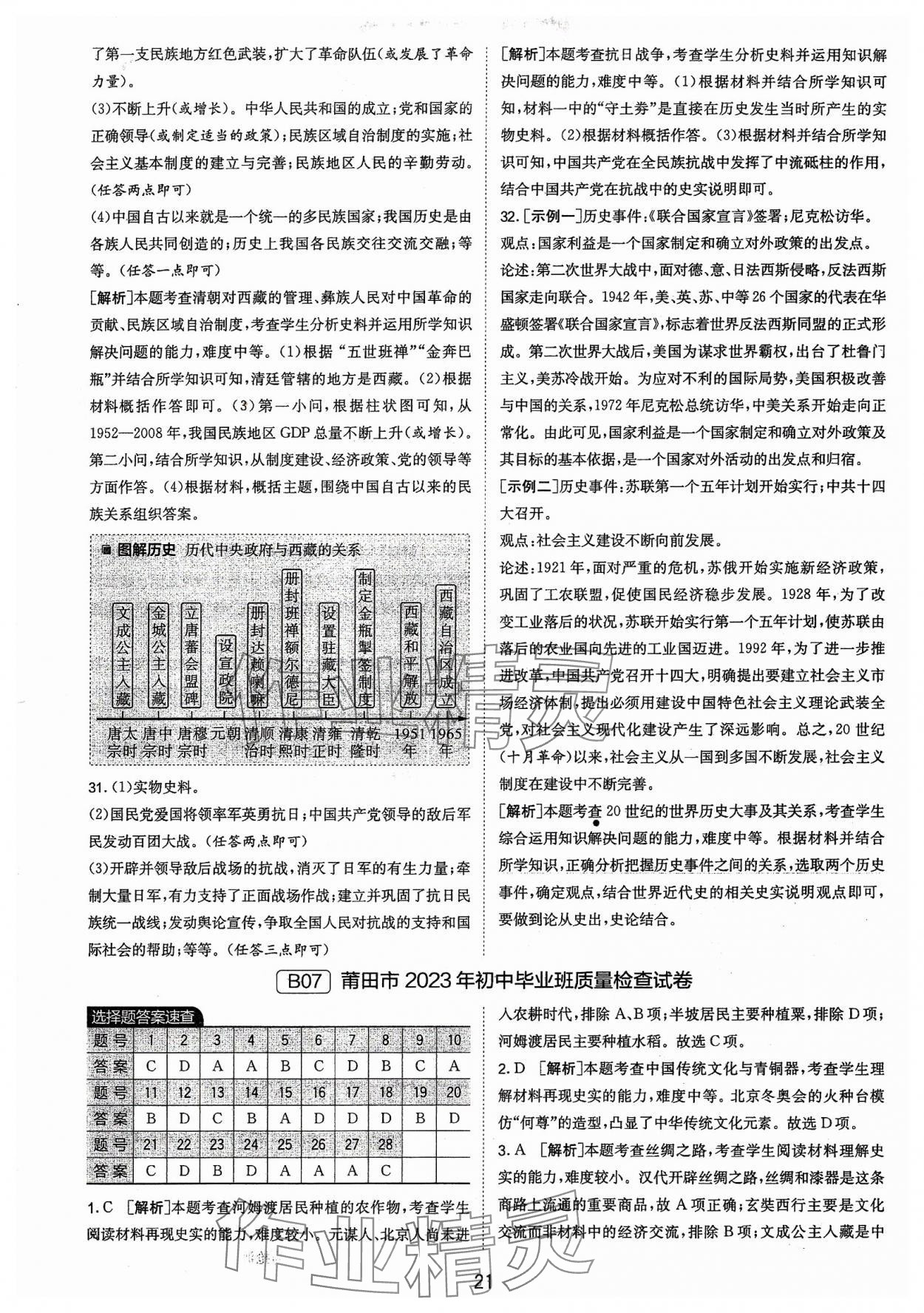 2024年春雨教育考必胜福建省中考试卷精选历史