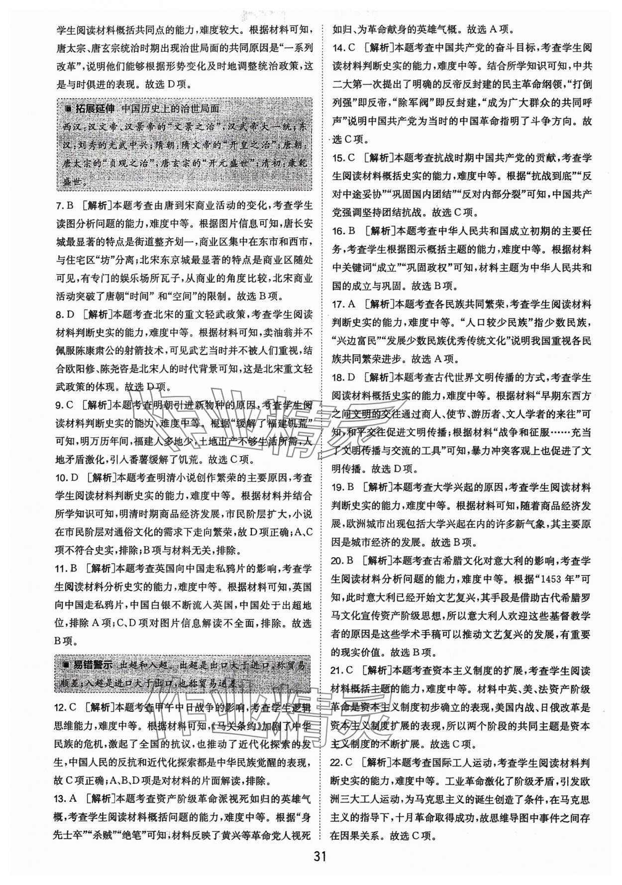 2024年春雨教育考必胜福建省中考试卷精选历史