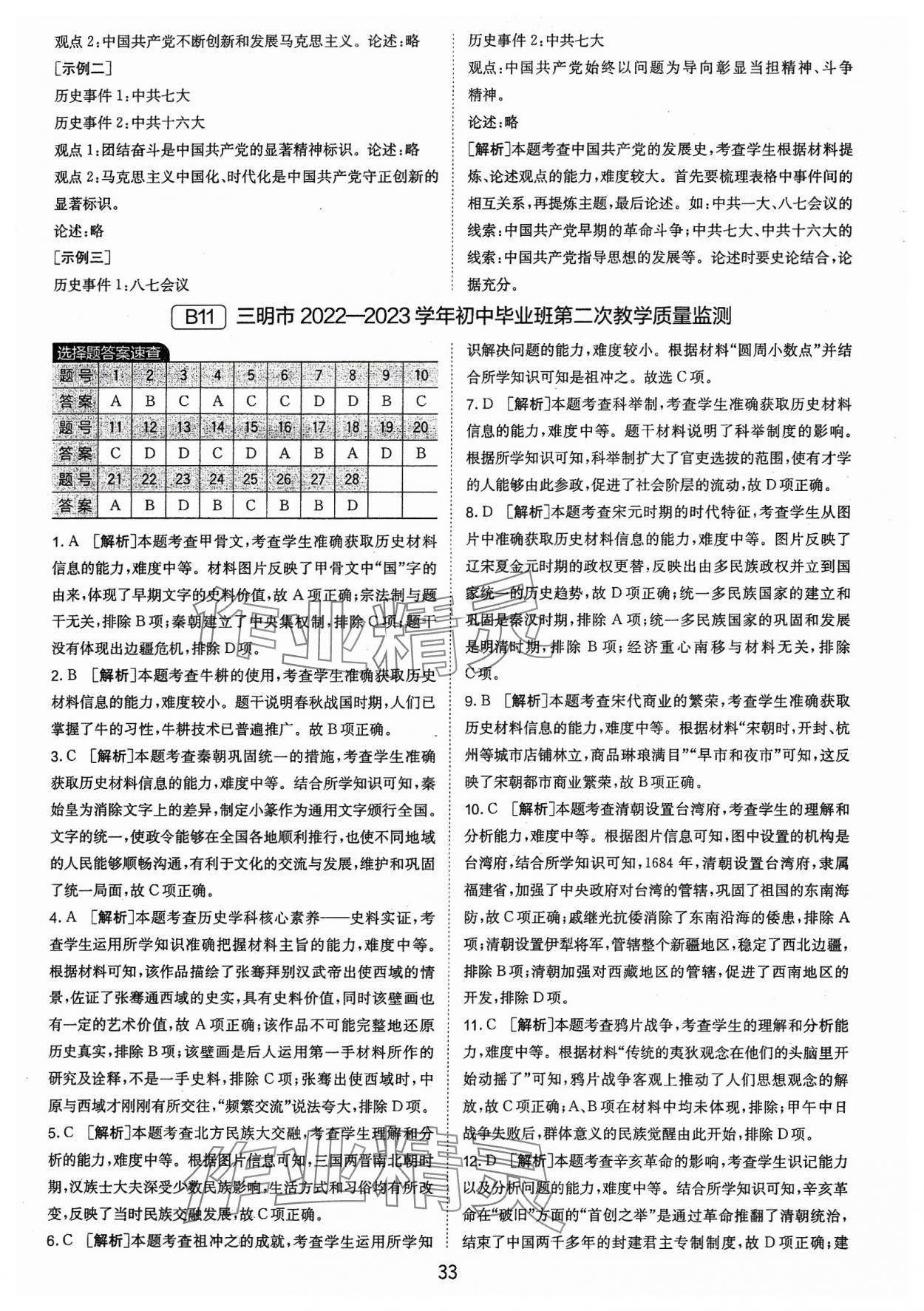2024年春雨教育考必胜福建省中考试卷精选历史