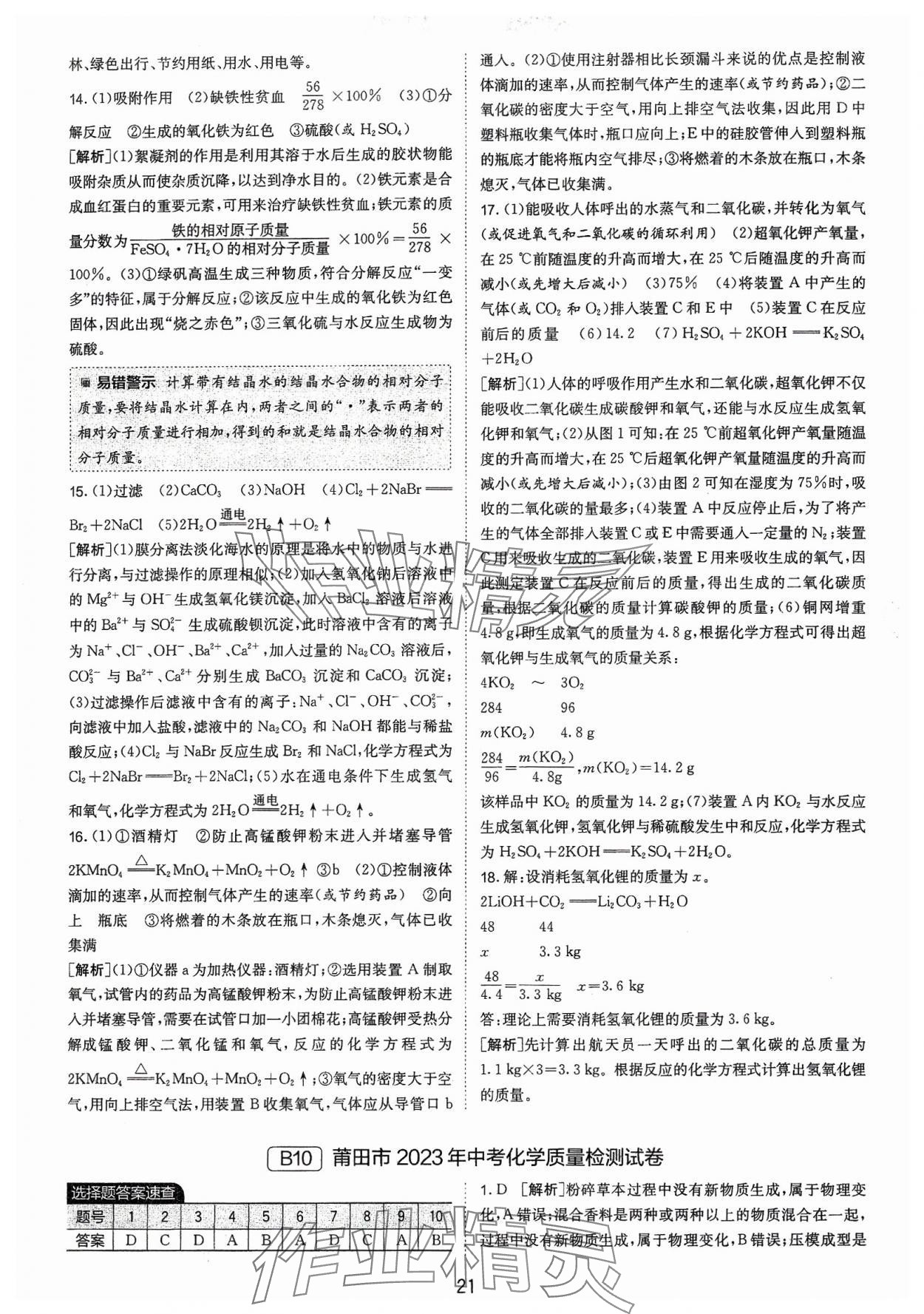 注:目前有些书本章节名称可能整理的还不是很完善,但都是按照顺序排列的,请同学们按照顺序仔细查找。练习册 2024年春雨教育考必胜福建省中考试卷精选化学 答案主要是用来给同学们做完题方便对答案用的,请勿直接抄袭。