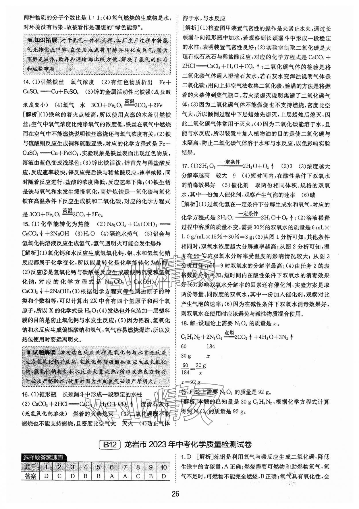 注:目前有些书本章节名称可能整理的还不是很完善,但都是按照顺序排列的,请同学们按照顺序仔细查找。练习册 2024年春雨教育考必胜福建省中考试卷精选化学 答案主要是用来给同学们做完题方便对答案用的,请勿直接抄袭。