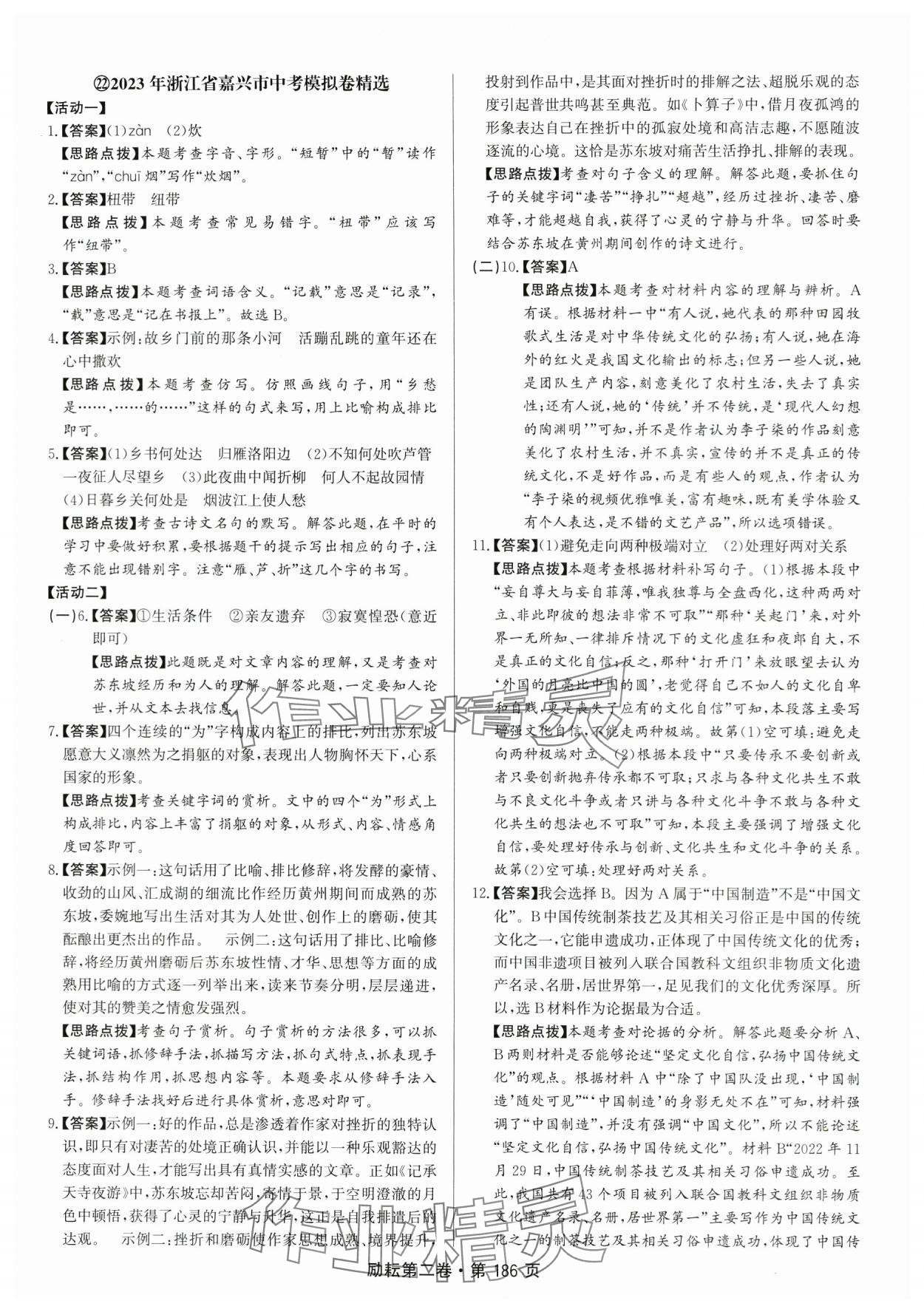注:目前有些书本章节名称可能整理的还不是很完善,但都是按照顺序排列的,请同学们按照顺序仔细查找。练习册 2024年励耘第二卷三年中考优化卷语文人教版 答案主要是用来给同学们做完题方便对答案用的,请勿直接抄袭。