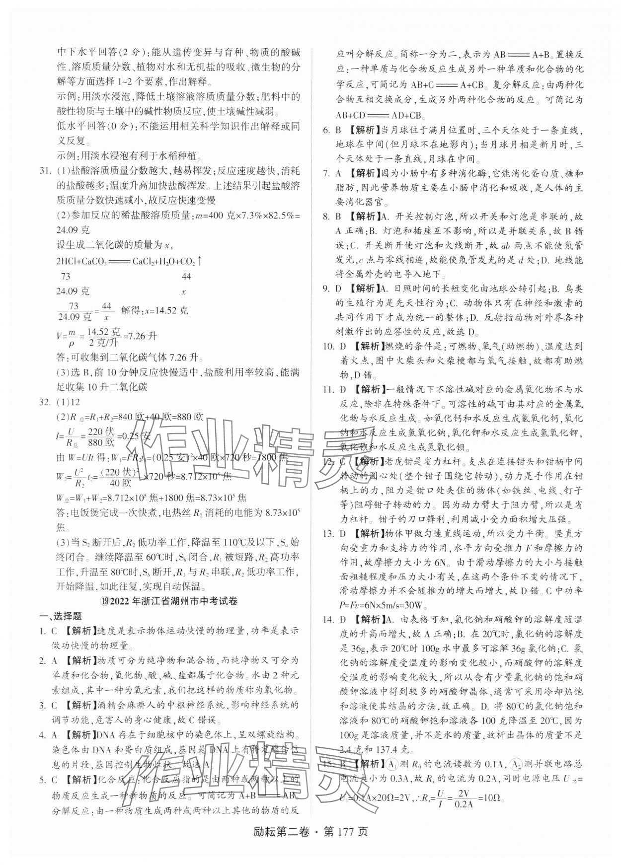 注:目前有些书本章节名称可能整理的还不是很完善,但都是按照顺序排列的,请同学们按照顺序仔细查找。练习册 2024年励耘第二卷三年中考优化卷科学浙江专用 答案主要是用来给同学们做完题方便对答案用的,请勿直接抄袭。