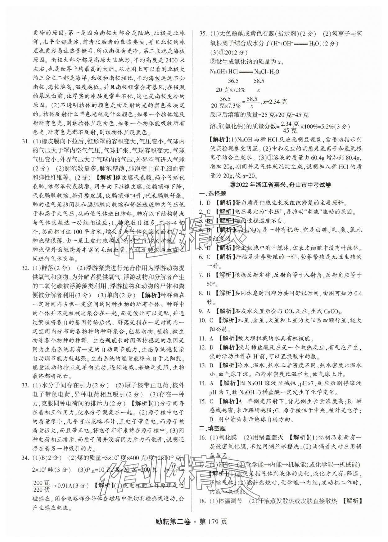 注:目前有些书本章节名称可能整理的还不是很完善,但都是按照顺序排列的,请同学们按照顺序仔细查找。练习册 2024年励耘第二卷三年中考优化卷科学浙江专用 答案主要是用来给同学们做完题方便对答案用的,请勿直接抄袭。