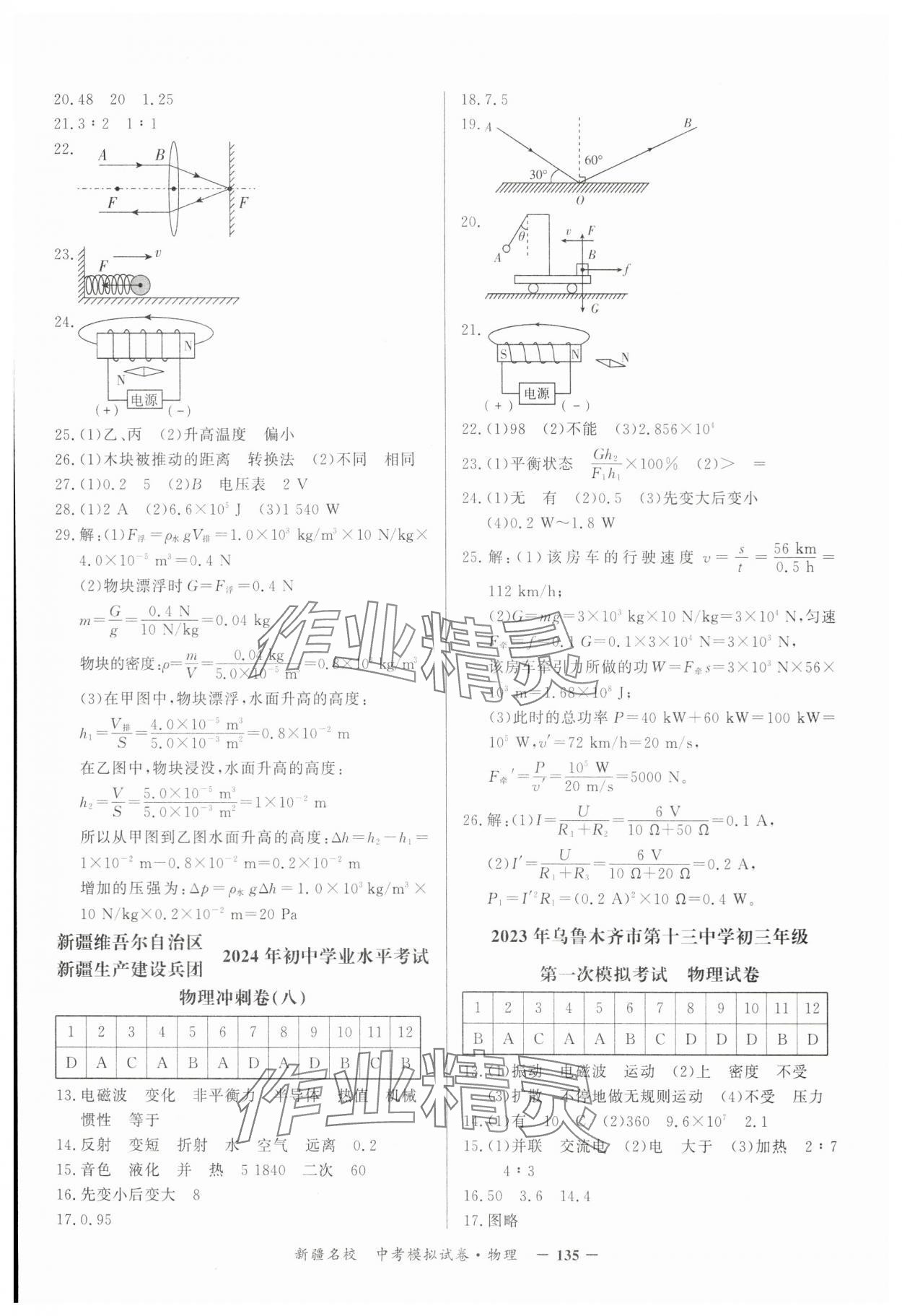 注:目前有些书本章节名称可能整理的还不是很完善,但都是按照顺序排列的,请同学们按照顺序仔细查找。练习册 2024年新疆名校中考模拟试卷物理 答案主要是用来给同学们做完题方便对答案用的,请勿直接抄袭。