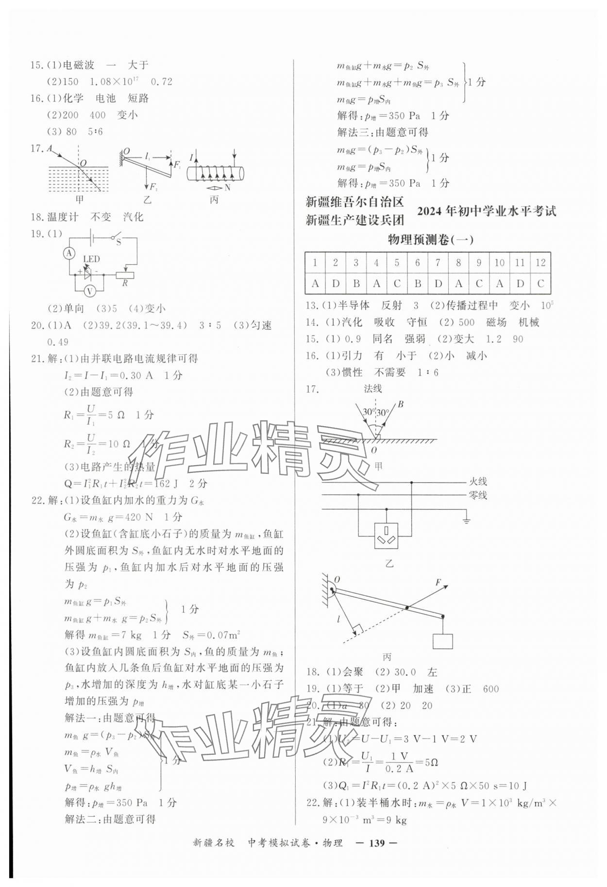 注:目前有些书本章节名称可能整理的还不是很完善,但都是按照顺序排列的,请同学们按照顺序仔细查找。练习册 2024年新疆名校中考模拟试卷物理 答案主要是用来给同学们做完题方便对答案用的,请勿直接抄袭。
