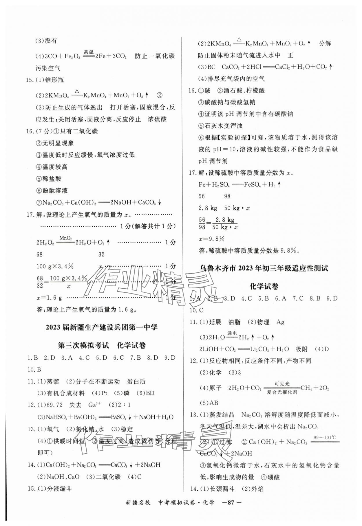 注:目前有些书本章节名称可能整理的还不是很完善,但都是按照顺序排列的,请同学们按照顺序仔细查找。练习册 2024年新疆名校中考模拟试卷化学 答案主要是用来给同学们做完题方便对答案用的,请勿直接抄袭。