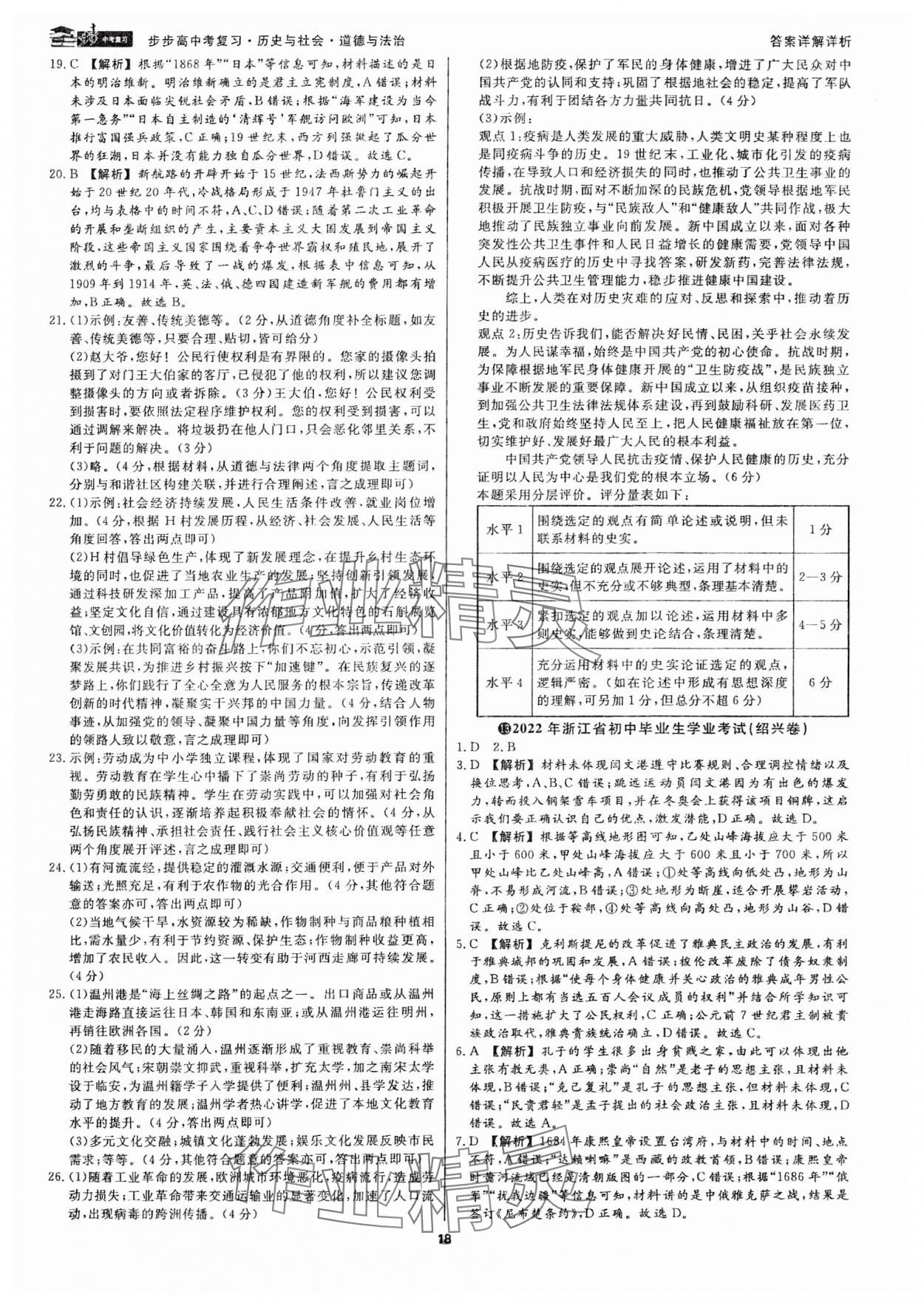 2024年步步高中考复习历史与社会道德与法治浙江专版