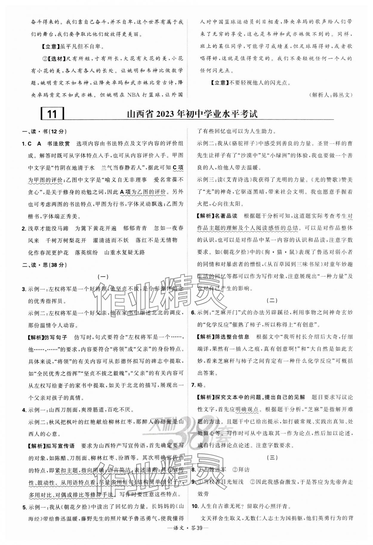 注:目前有些书本章节名称可能整理的还不是很完善,但都是按照顺序排列的,请同学们按照顺序仔细查找。练习册 2024年天利38套新课标全国中考试题精选语文 答案主要是用来给同学们做完题方便对答案用的,请勿直接抄袭。
