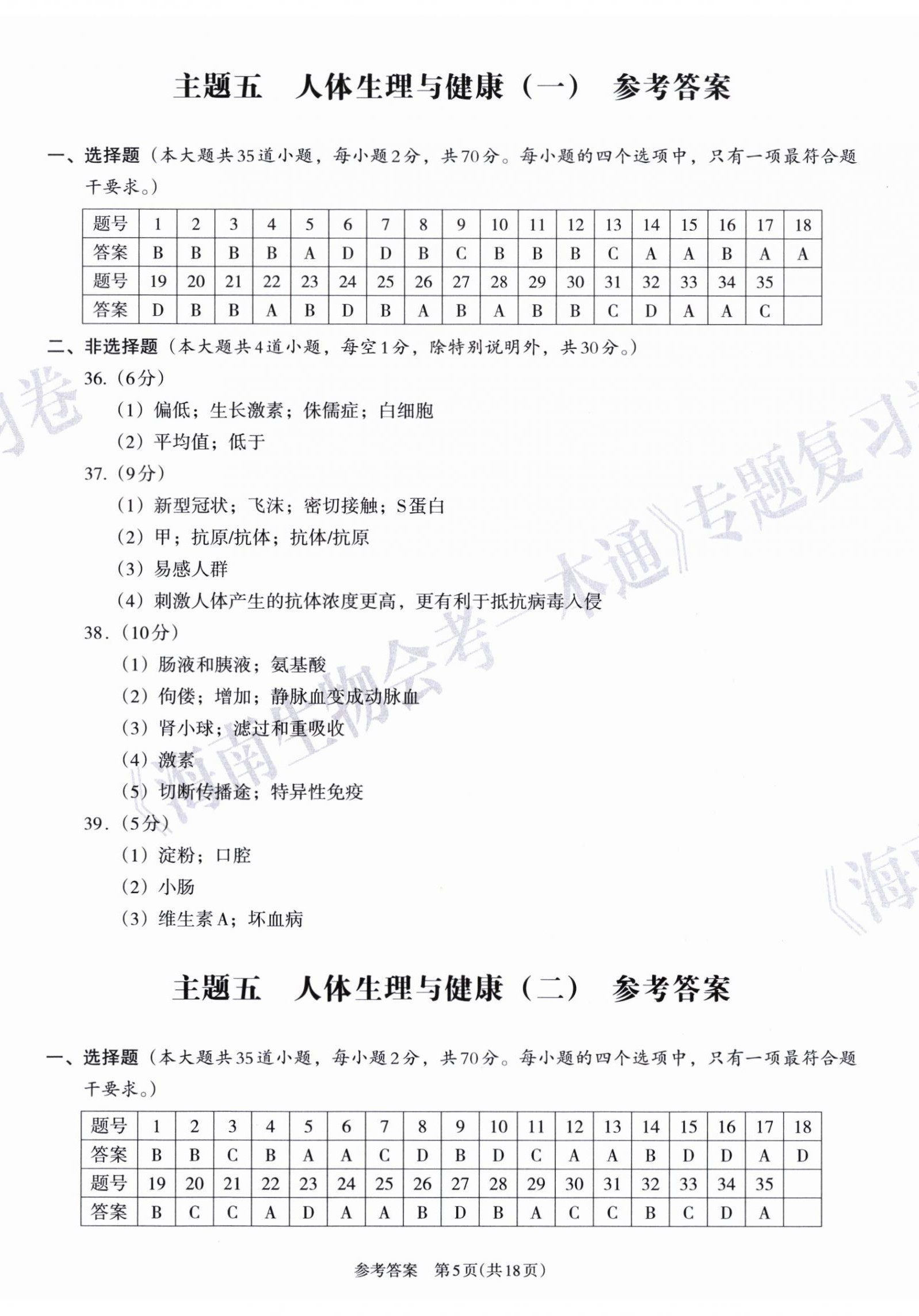 注:目前有些书本章节名称可能整理的还不是很完善,但都是按照顺序排列的,请同学们按照顺序仔细查找。练习册 2024年海南生物会考一本通 答案主要是用来给同学们做完题方便对答案用的,请勿直接抄袭。