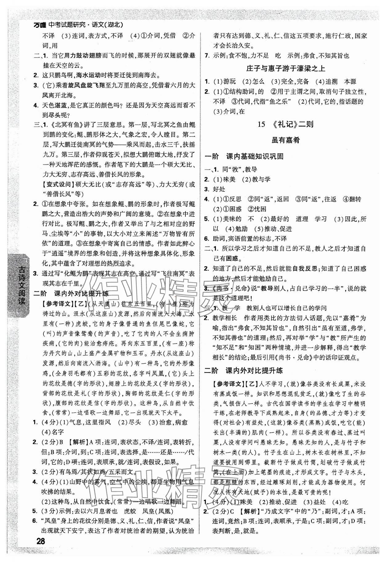 2024年万唯中考试题研究语文湖北专版