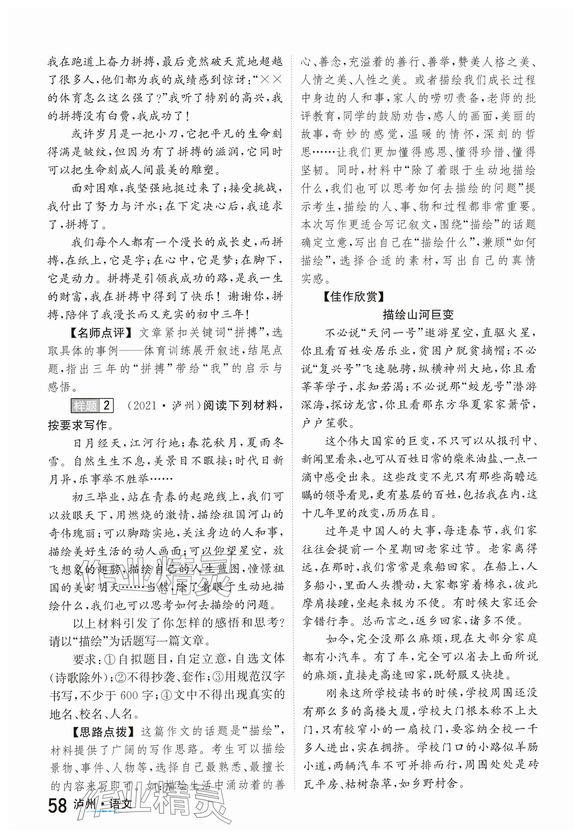 注:目前有些书本章节名称可能整理的还不是很完善,但都是按照顺序排列的,请同学们按照顺序仔细查找。练习册 2024年国华考试中考总动员语文泸州专版 答案主要是用来给同学们做完题方便对答案用的,请勿直接抄袭。