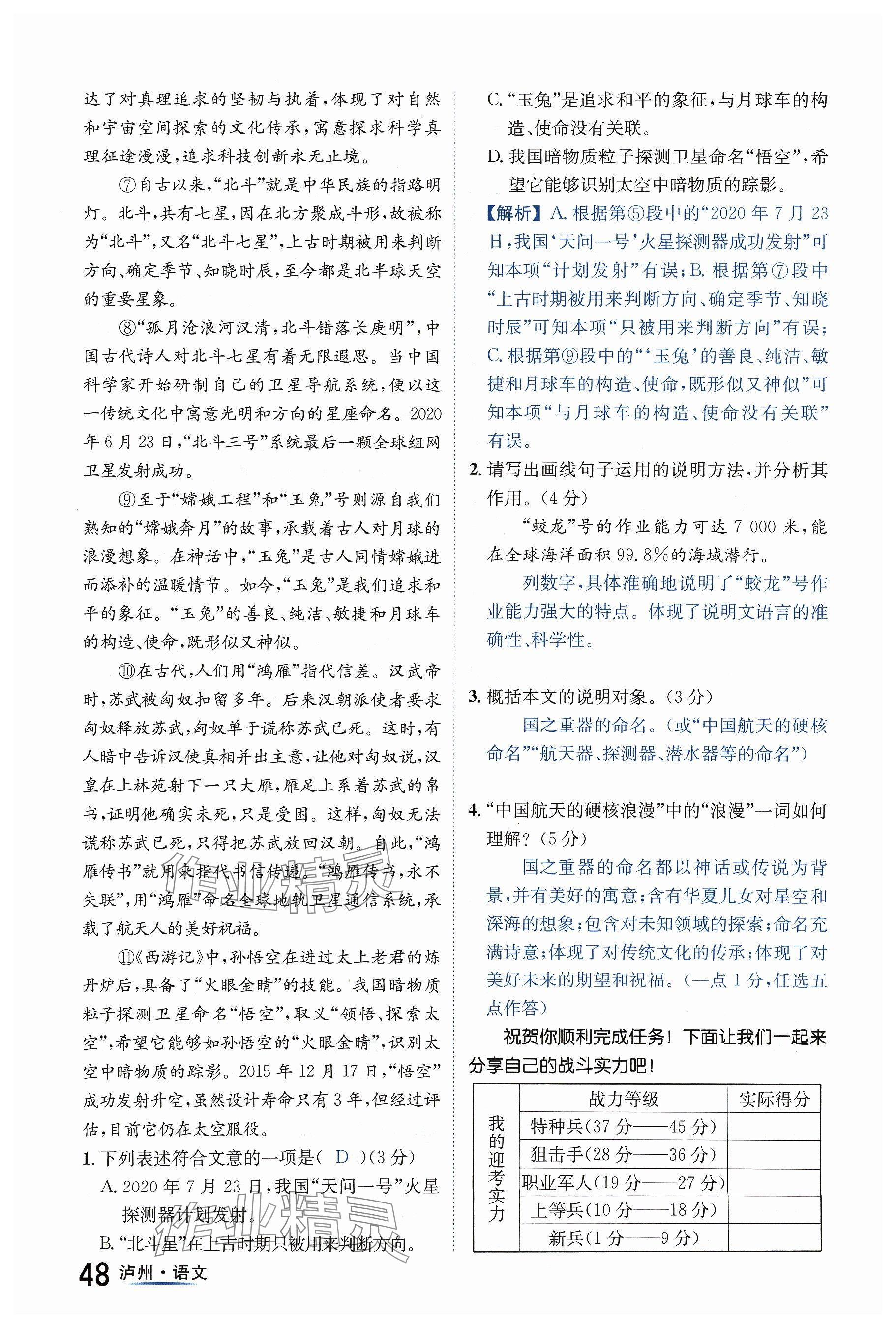注:目前有些书本章节名称可能整理的还不是很完善,但都是按照顺序排列的,请同学们按照顺序仔细查找。练习册 2024年国华考试中考总动员语文泸州专版 答案主要是用来给同学们做完题方便对答案用的,请勿直接抄袭。