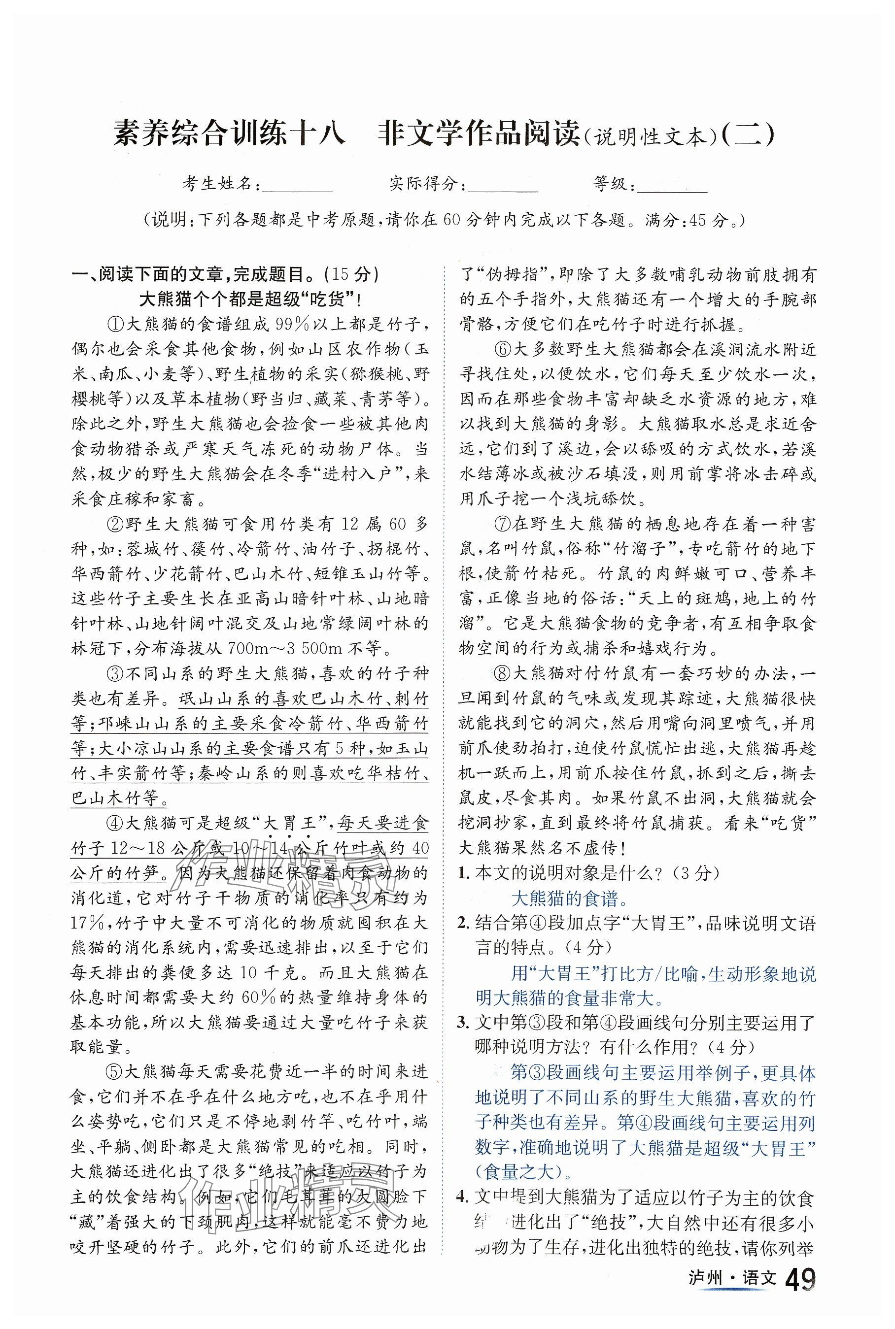 注:目前有些书本章节名称可能整理的还不是很完善,但都是按照顺序排列的,请同学们按照顺序仔细查找。练习册 2024年国华考试中考总动员语文泸州专版 答案主要是用来给同学们做完题方便对答案用的,请勿直接抄袭。
