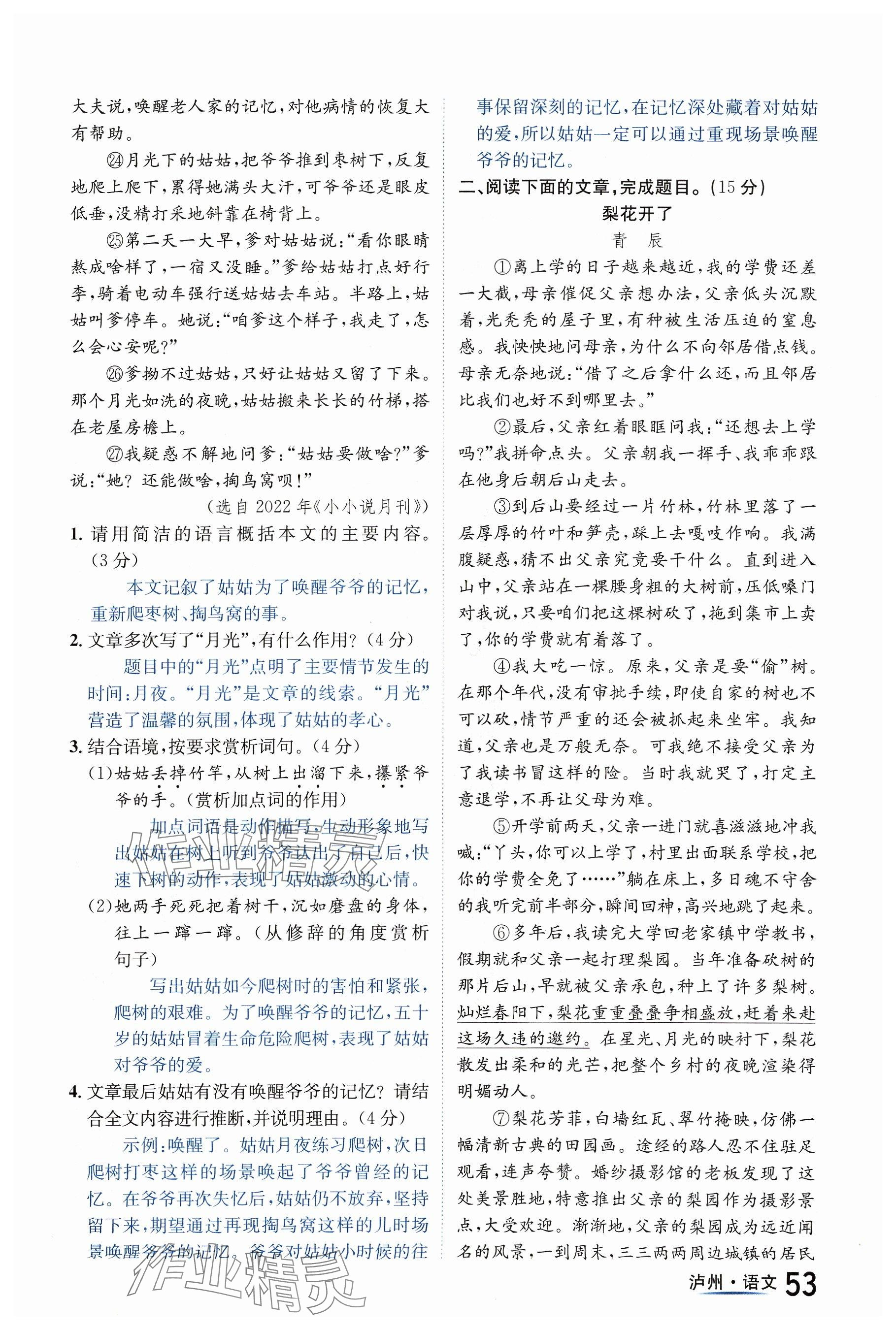 注:目前有些书本章节名称可能整理的还不是很完善,但都是按照顺序排列的,请同学们按照顺序仔细查找。练习册 2024年国华考试中考总动员语文泸州专版 答案主要是用来给同学们做完题方便对答案用的,请勿直接抄袭。