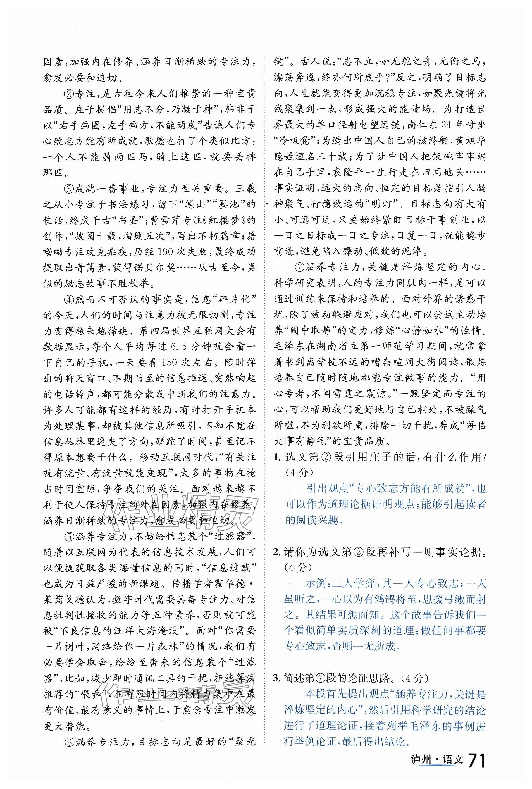 注:目前有些书本章节名称可能整理的还不是很完善,但都是按照顺序排列的,请同学们按照顺序仔细查找。练习册 2024年国华考试中考总动员语文泸州专版 答案主要是用来给同学们做完题方便对答案用的,请勿直接抄袭。