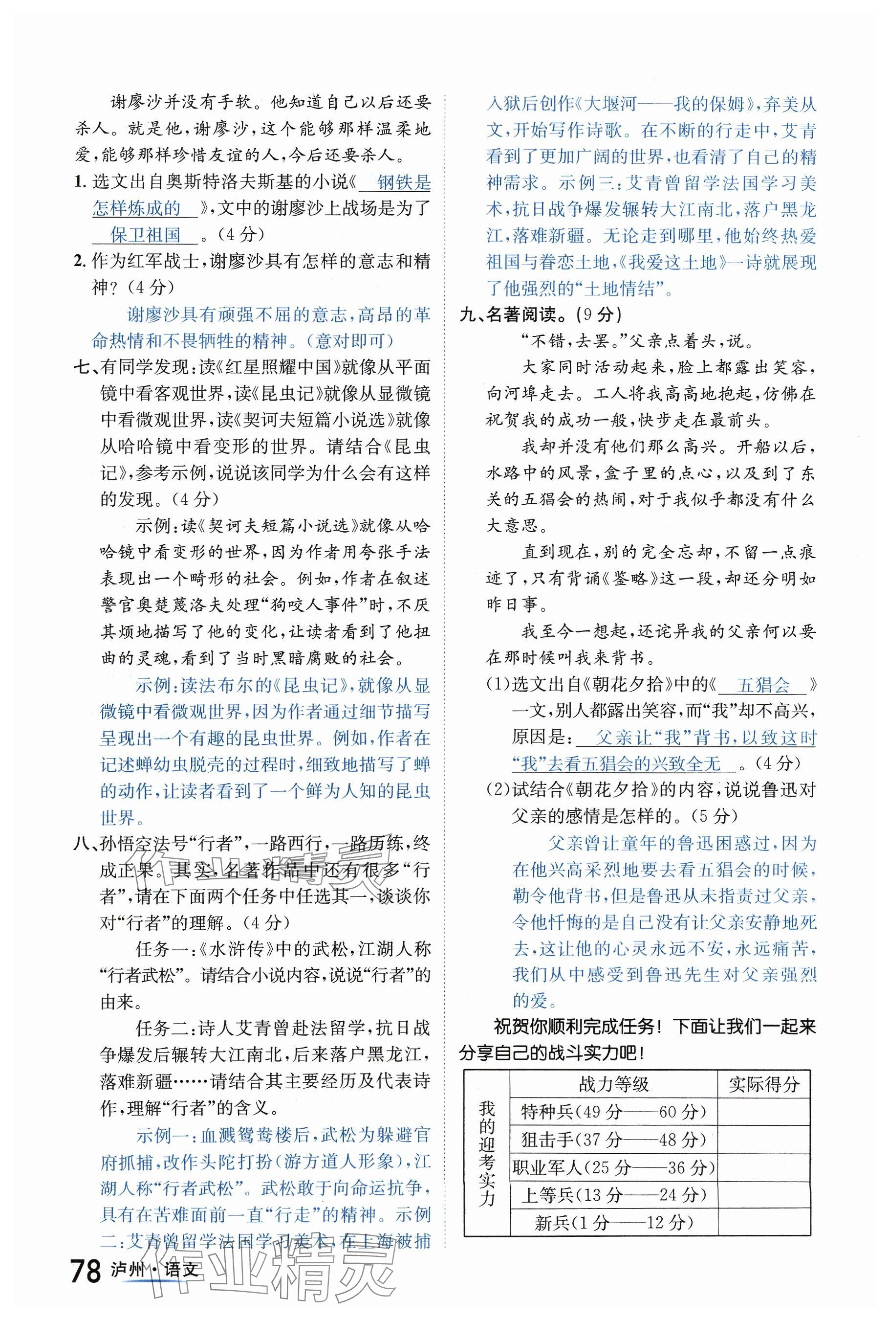注:目前有些书本章节名称可能整理的还不是很完善,但都是按照顺序排列的,请同学们按照顺序仔细查找。练习册 2024年国华考试中考总动员语文泸州专版 答案主要是用来给同学们做完题方便对答案用的,请勿直接抄袭。