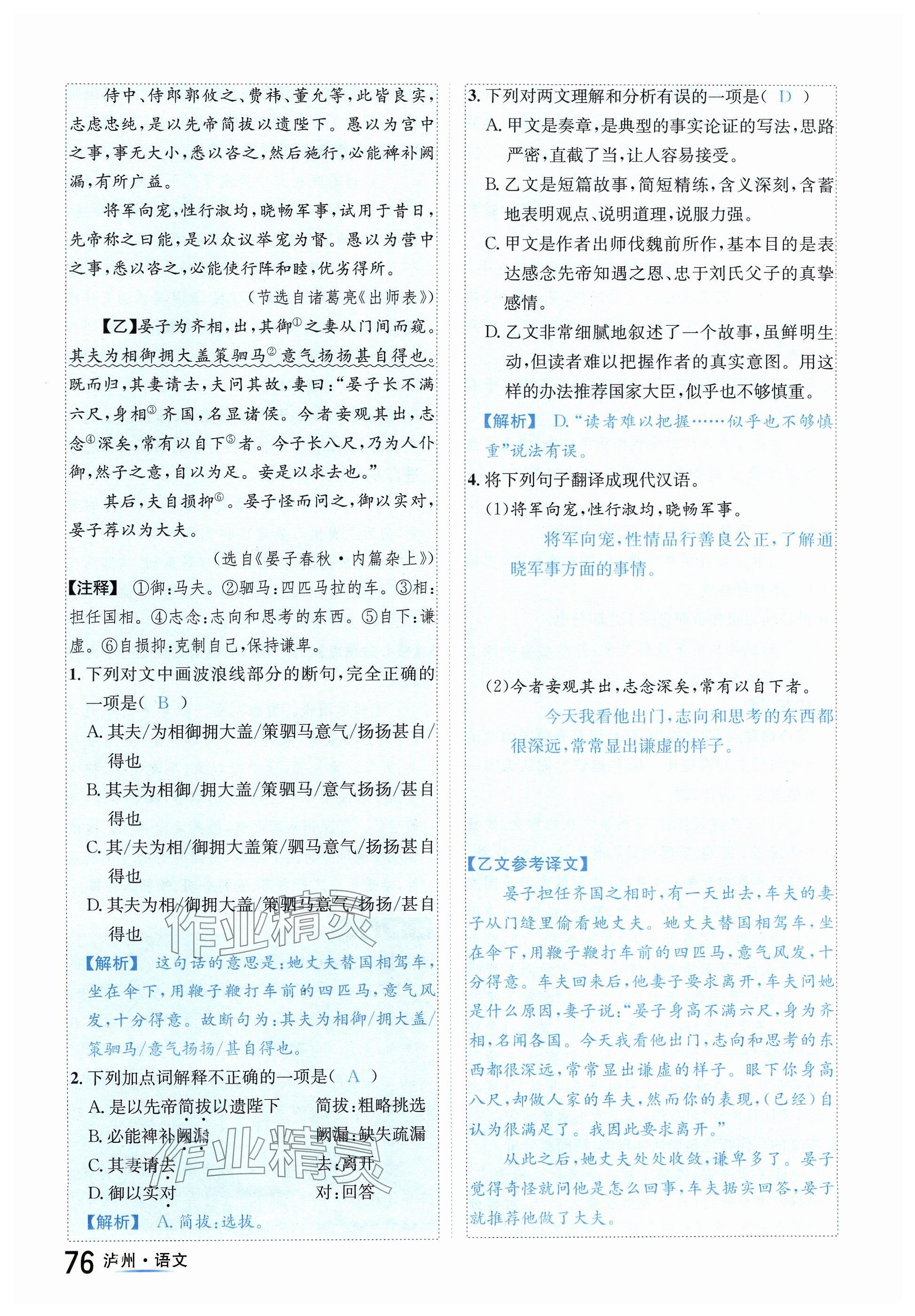 注:目前有些书本章节名称可能整理的还不是很完善,但都是按照顺序排列的,请同学们按照顺序仔细查找。练习册 2024年国华考试中考总动员语文泸州专版 答案主要是用来给同学们做完题方便对答案用的,请勿直接抄袭。