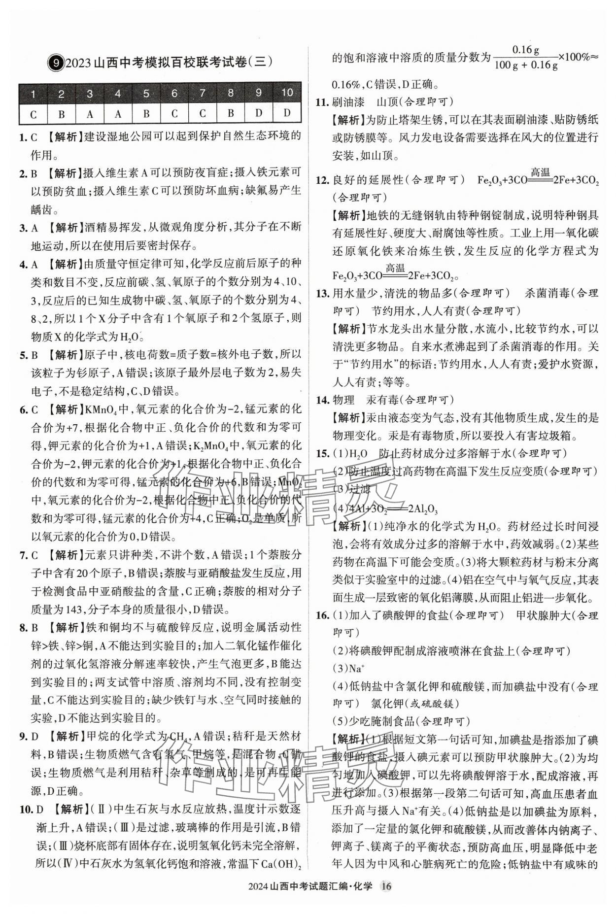 注:目前有些书本章节名称可能整理的还不是很完善,但都是按照顺序排列的,请同学们按照顺序仔细查找。练习册 2024年山西中考试题汇编化学 答案主要是用来给同学们做完题方便对答案用的,请勿直接抄袭。