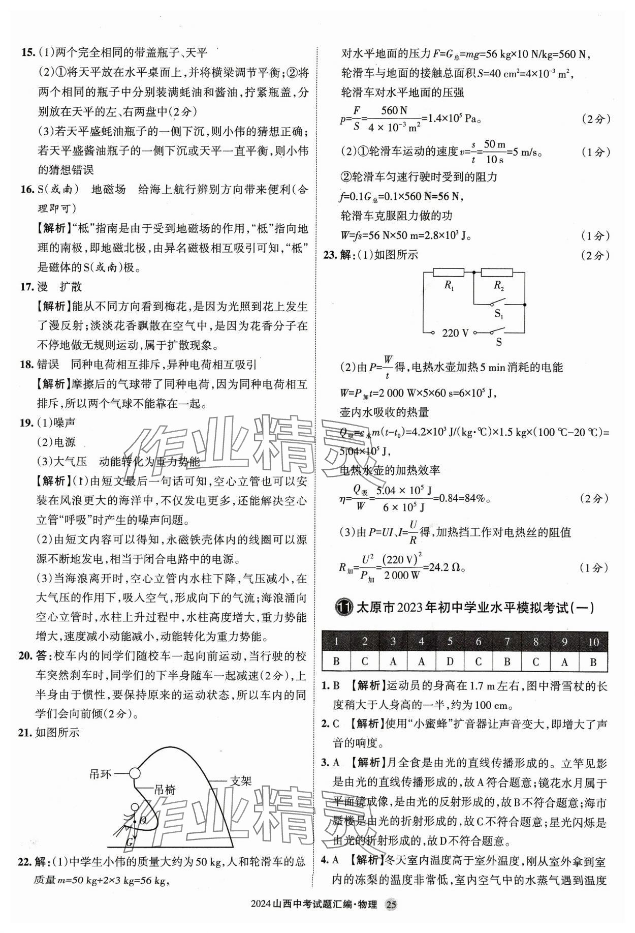 注:目前有些书本章节名称可能整理的还不是很完善,但都是按照顺序排列的,请同学们按照顺序仔细查找。练习册 2024年山西中考试题汇编物理 答案主要是用来给同学们做完题方便对答案用的,请勿直接抄袭。
