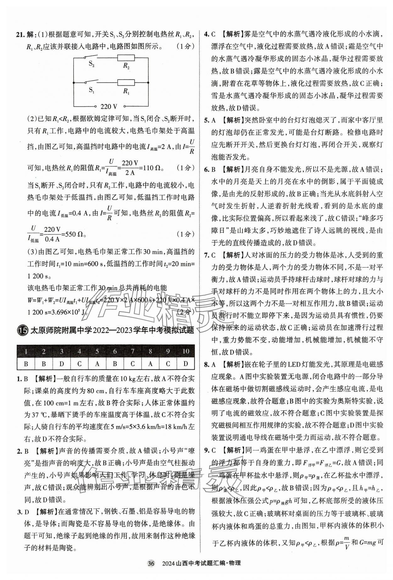 注:目前有些书本章节名称可能整理的还不是很完善,但都是按照顺序排列的,请同学们按照顺序仔细查找。练习册 2024年山西中考试题汇编物理 答案主要是用来给同学们做完题方便对答案用的,请勿直接抄袭。