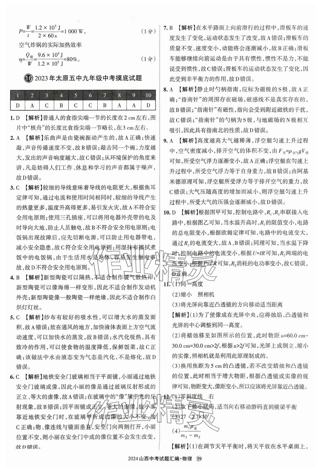 注:目前有些书本章节名称可能整理的还不是很完善,但都是按照顺序排列的,请同学们按照顺序仔细查找。练习册 2024年山西中考试题汇编物理 答案主要是用来给同学们做完题方便对答案用的,请勿直接抄袭。