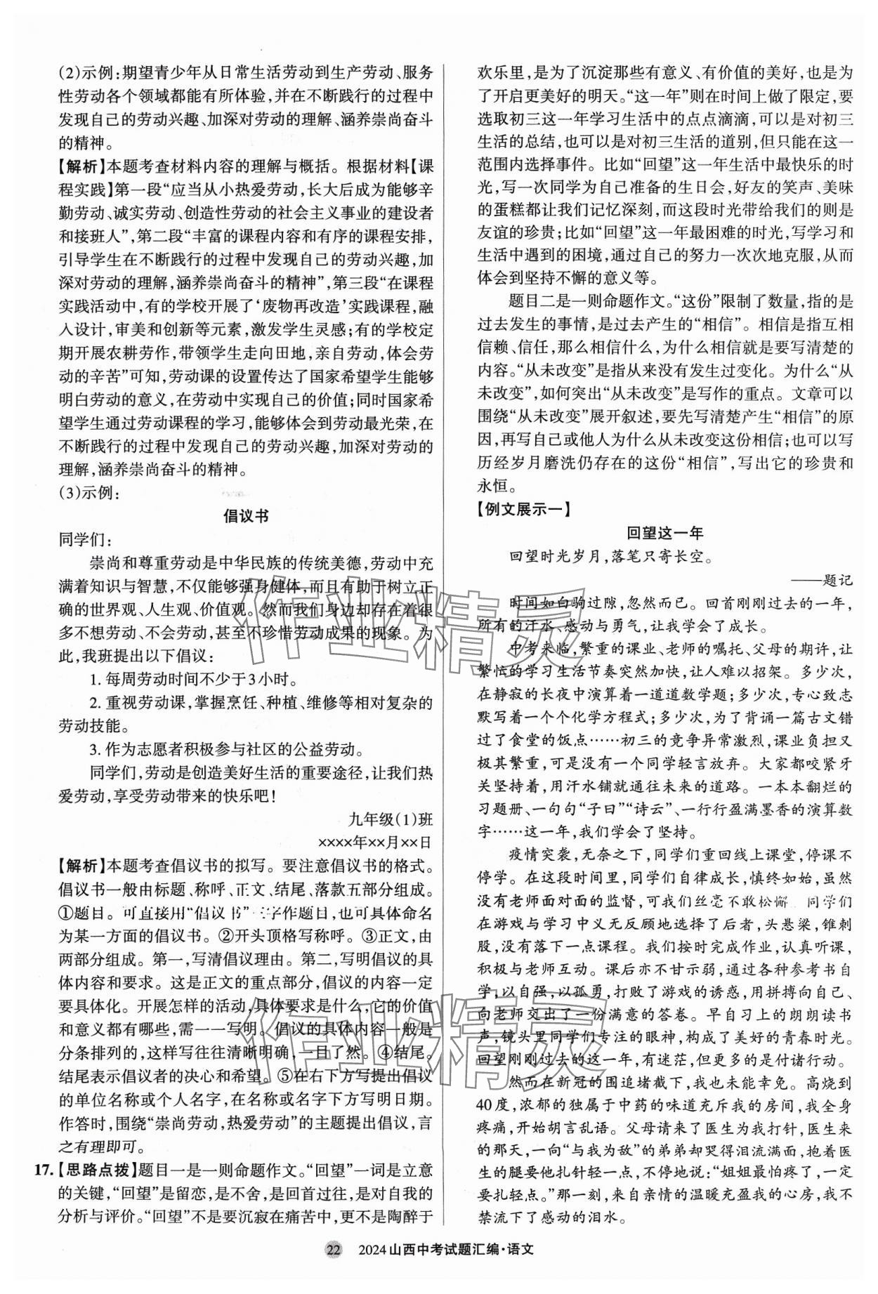 2024年山西中考试题汇编语文