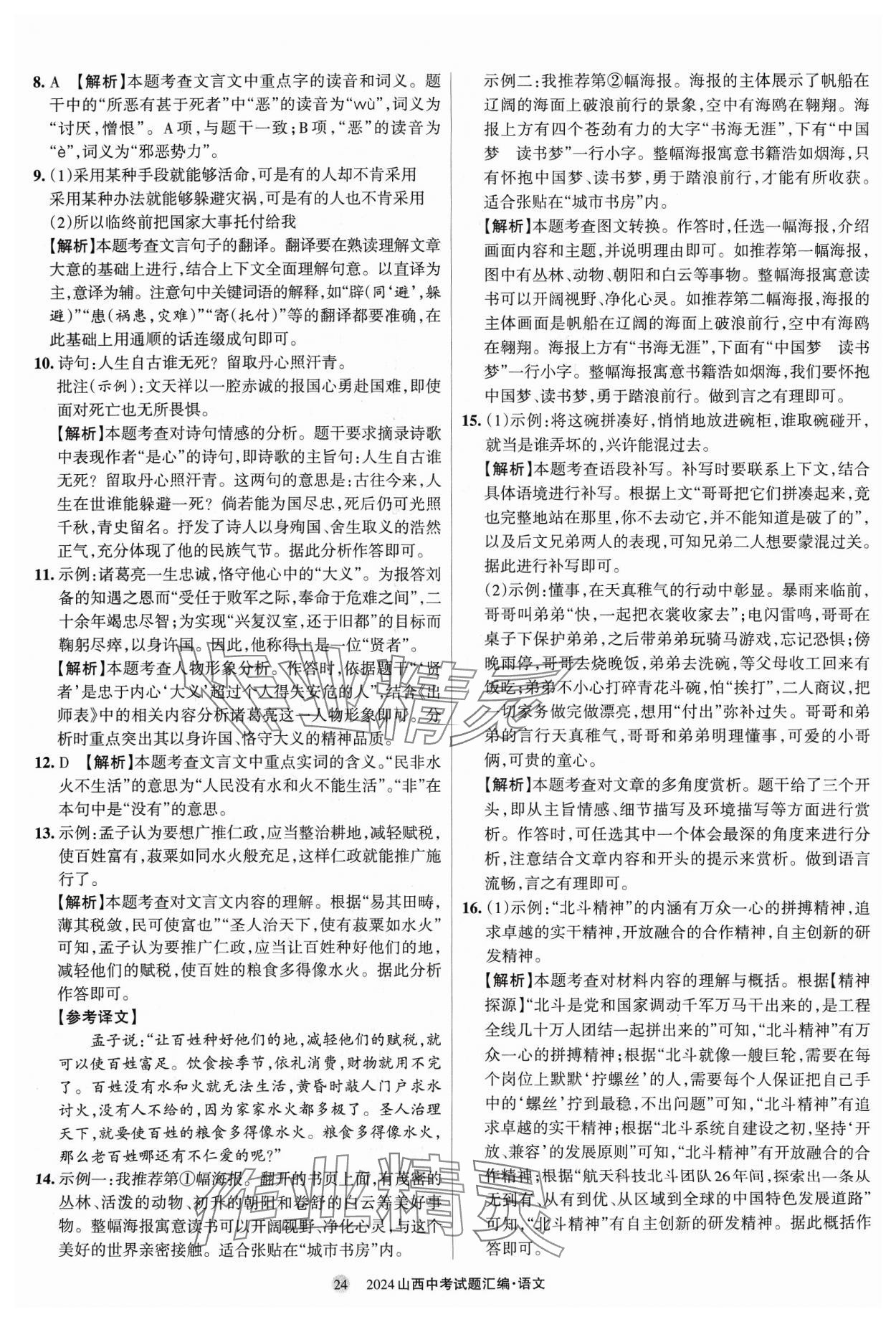 注:目前有些书本章节名称可能整理的还不是很完善,但都是按照顺序排列的,请同学们按照顺序仔细查找。练习册 2024年山西中考试题汇编语文 答案主要是用来给同学们做完题方便对答案用的,请勿直接抄袭。