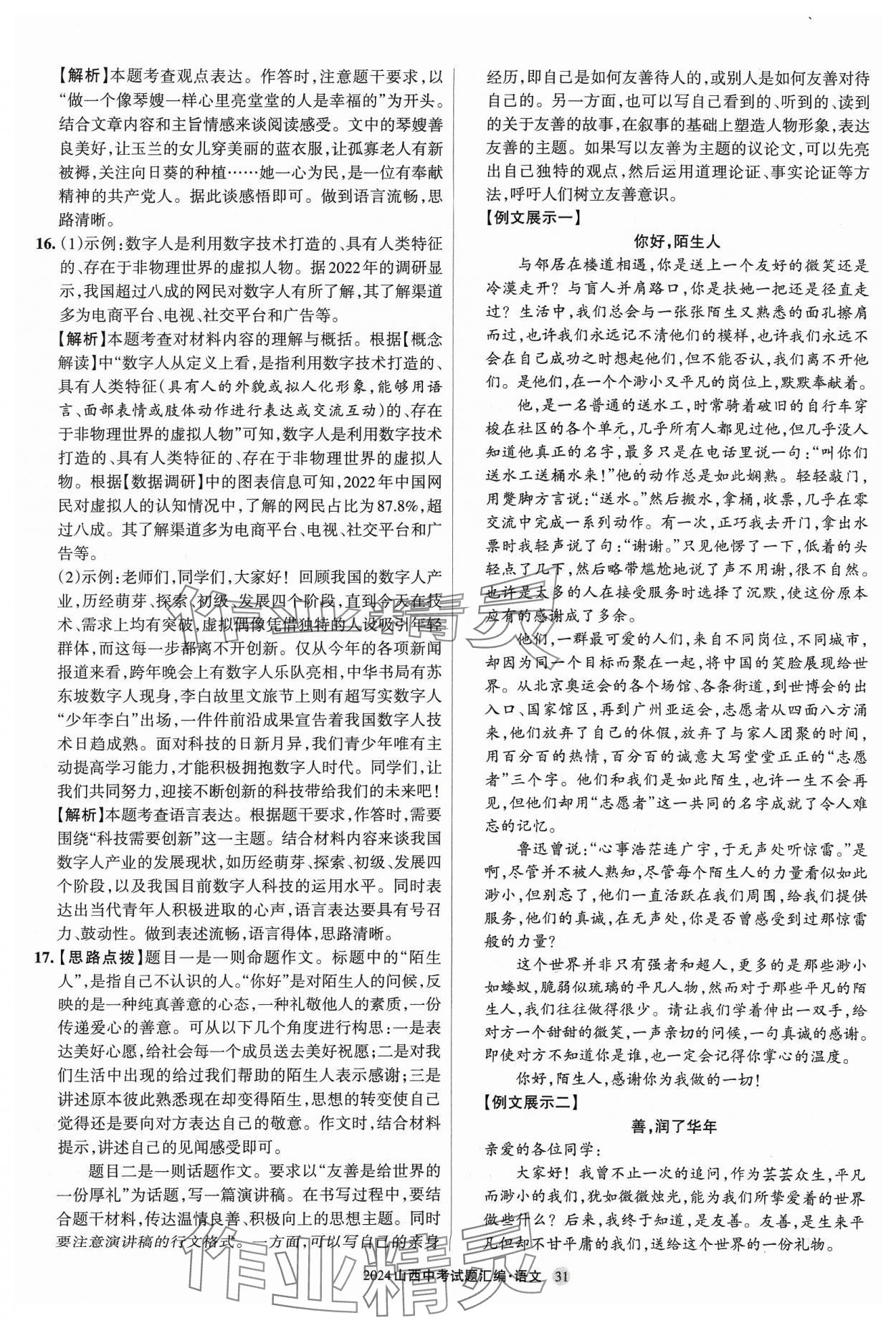 注:目前有些书本章节名称可能整理的还不是很完善,但都是按照顺序排列的,请同学们按照顺序仔细查找。练习册 2024年山西中考试题汇编语文 答案主要是用来给同学们做完题方便对答案用的,请勿直接抄袭。