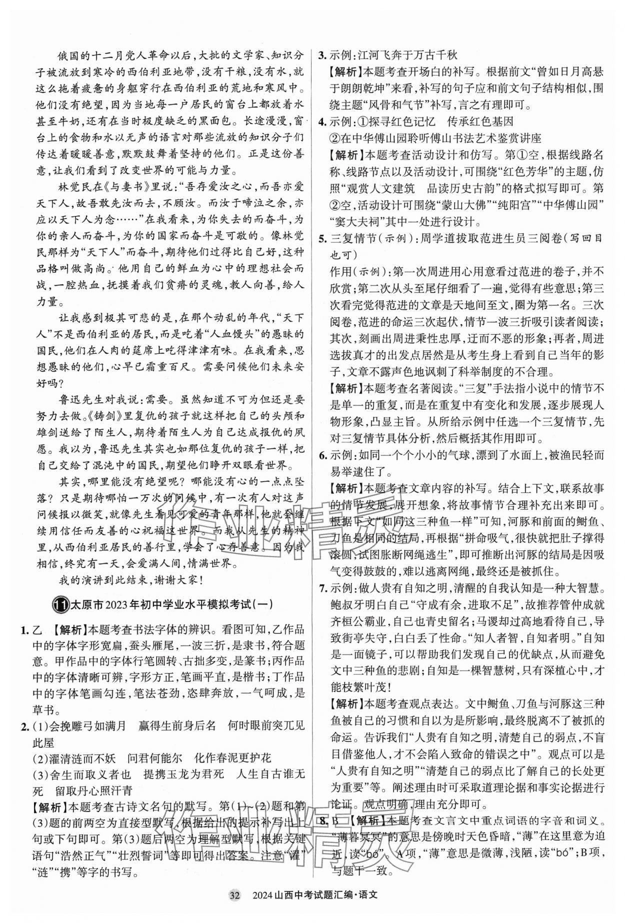 注:目前有些书本章节名称可能整理的还不是很完善,但都是按照顺序排列的,请同学们按照顺序仔细查找。练习册 2024年山西中考试题汇编语文 答案主要是用来给同学们做完题方便对答案用的,请勿直接抄袭。