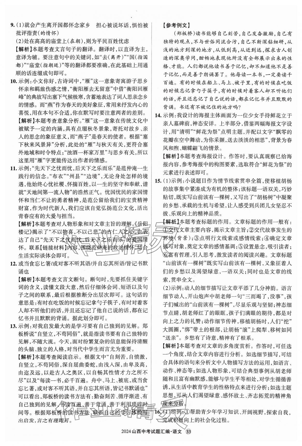 2024年山西中考试题汇编语文