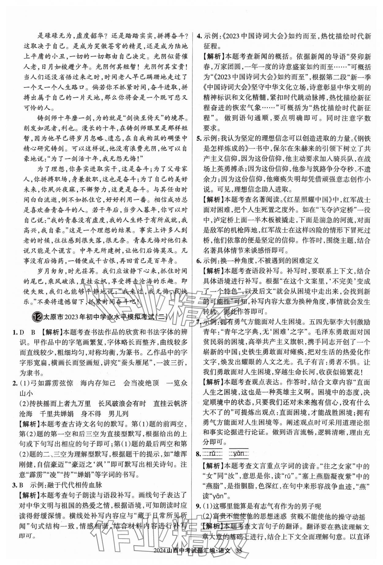 注:目前有些书本章节名称可能整理的还不是很完善,但都是按照顺序排列的,请同学们按照顺序仔细查找。练习册 2024年山西中考试题汇编语文 答案主要是用来给同学们做完题方便对答案用的,请勿直接抄袭。
