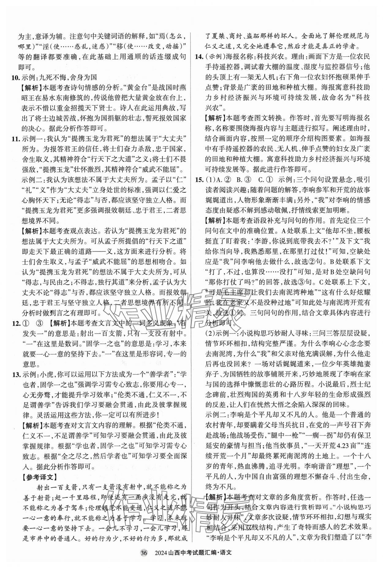 2024年山西中考试题汇编语文