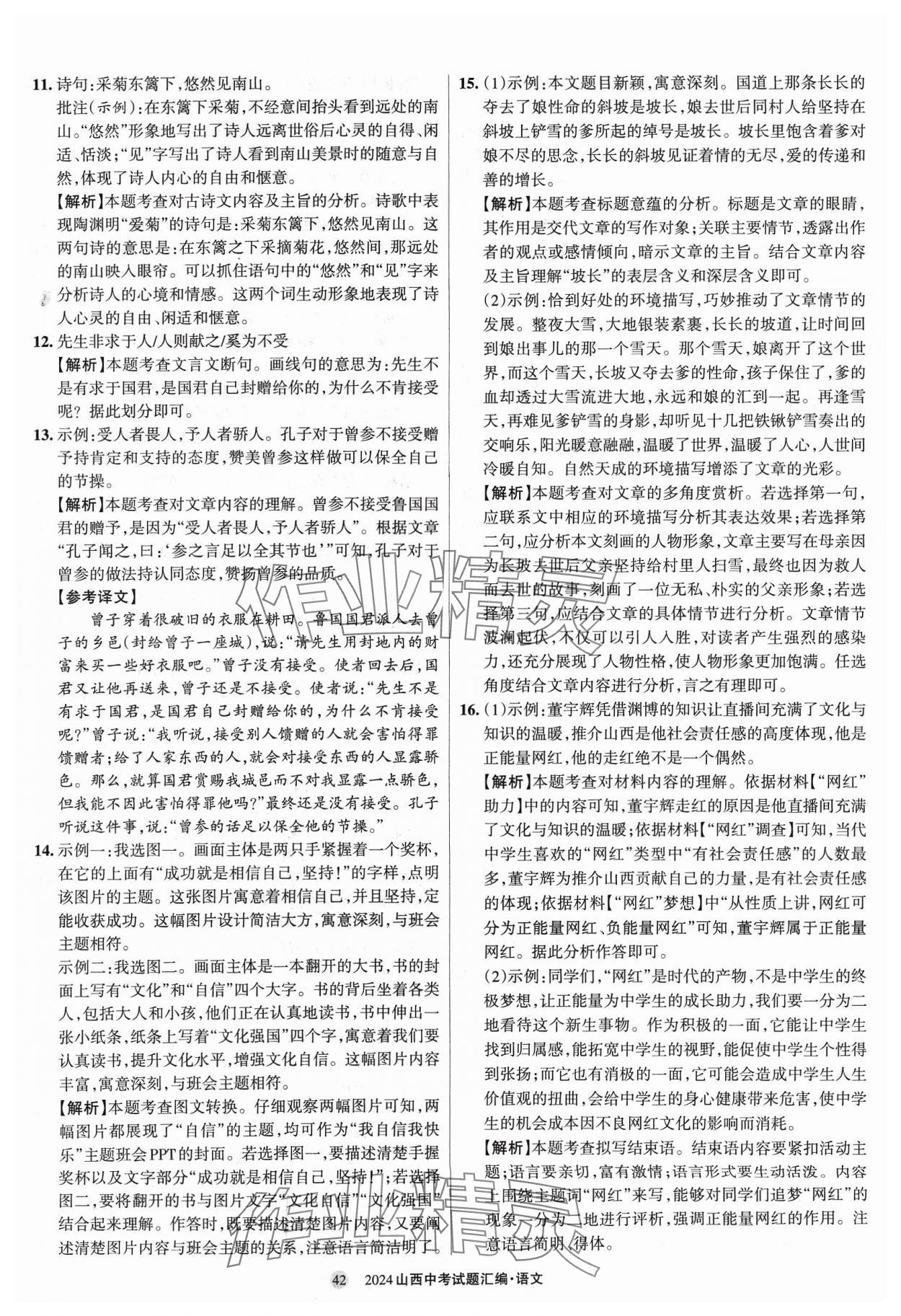 2024年山西中考试题汇编语文