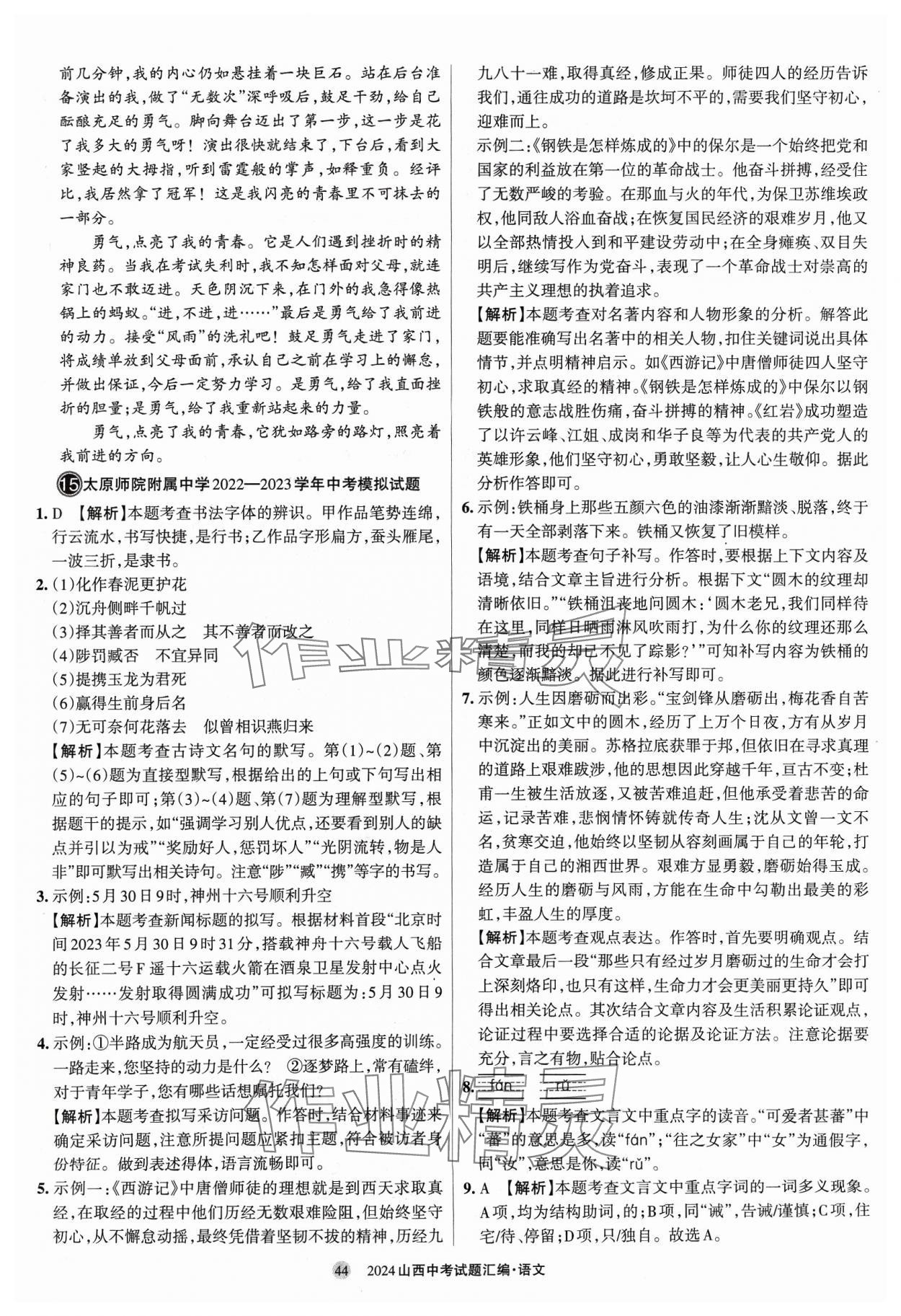 注:目前有些书本章节名称可能整理的还不是很完善,但都是按照顺序排列的,请同学们按照顺序仔细查找。练习册 2024年山西中考试题汇编语文 答案主要是用来给同学们做完题方便对答案用的,请勿直接抄袭。