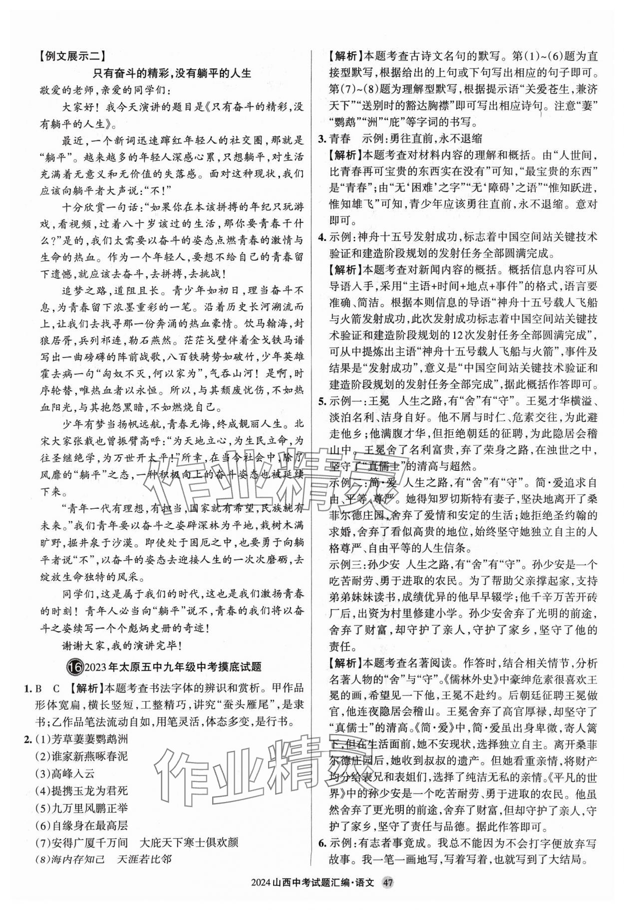 注:目前有些书本章节名称可能整理的还不是很完善,但都是按照顺序排列的,请同学们按照顺序仔细查找。练习册 2024年山西中考试题汇编语文 答案主要是用来给同学们做完题方便对答案用的,请勿直接抄袭。