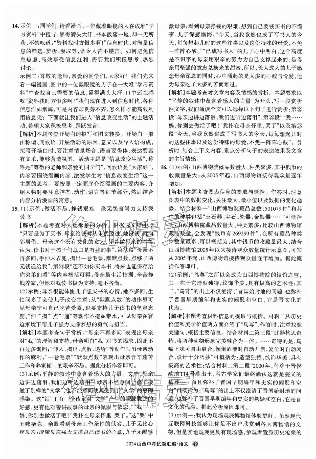 2024年山西中考试题汇编语文
