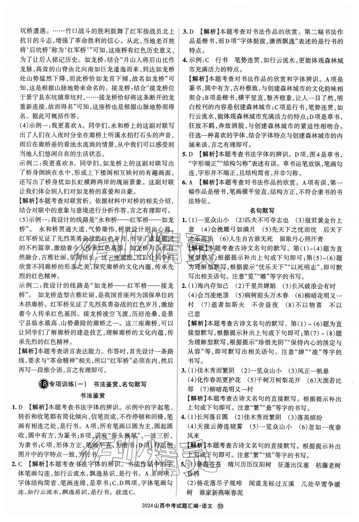 注:目前有些书本章节名称可能整理的还不是很完善,但都是按照顺序排列的,请同学们按照顺序仔细查找。练习册 2024年山西中考试题汇编语文 答案主要是用来给同学们做完题方便对答案用的,请勿直接抄袭。