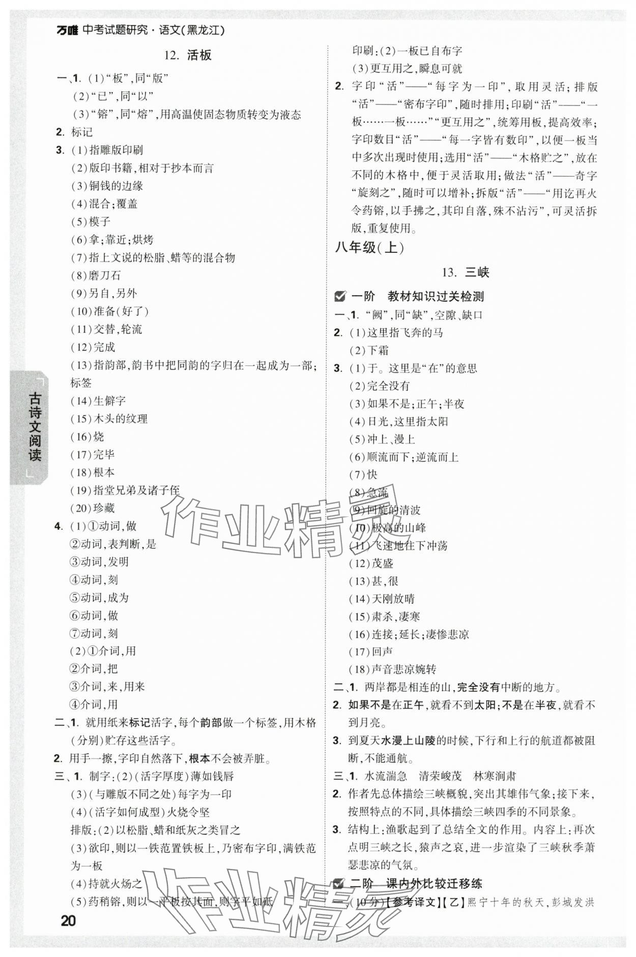 注:目前有些书本章节名称可能整理的还不是很完善,但都是按照顺序排列的,请同学们按照顺序仔细查找。练习册 2024年万唯中考试题研究语文人教版黑龙江专版 答案主要是用来给同学们做完题方便对答案用的,请勿直接抄袭。