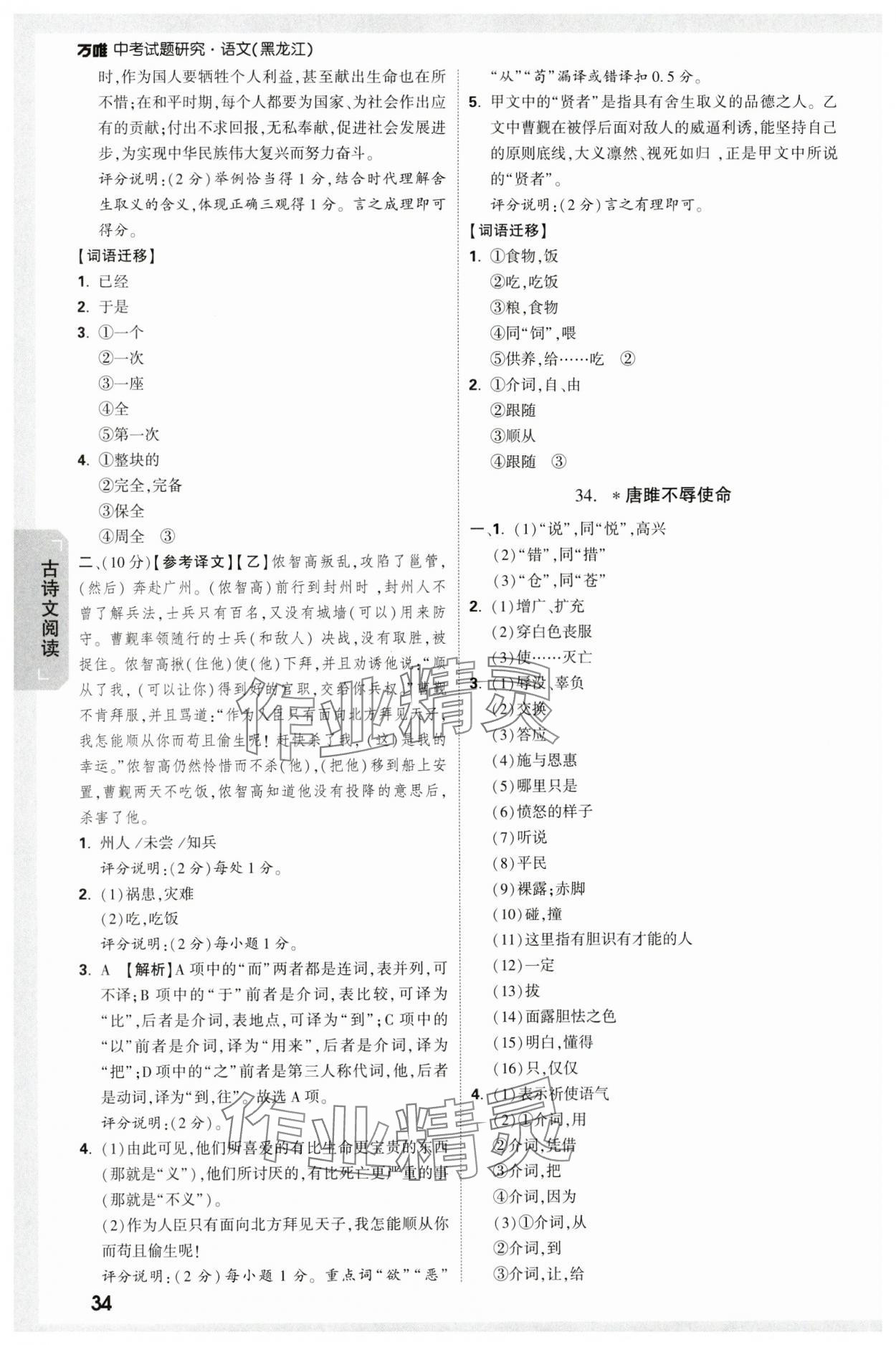 2024年万唯中考试题研究语文人教版黑龙江专版