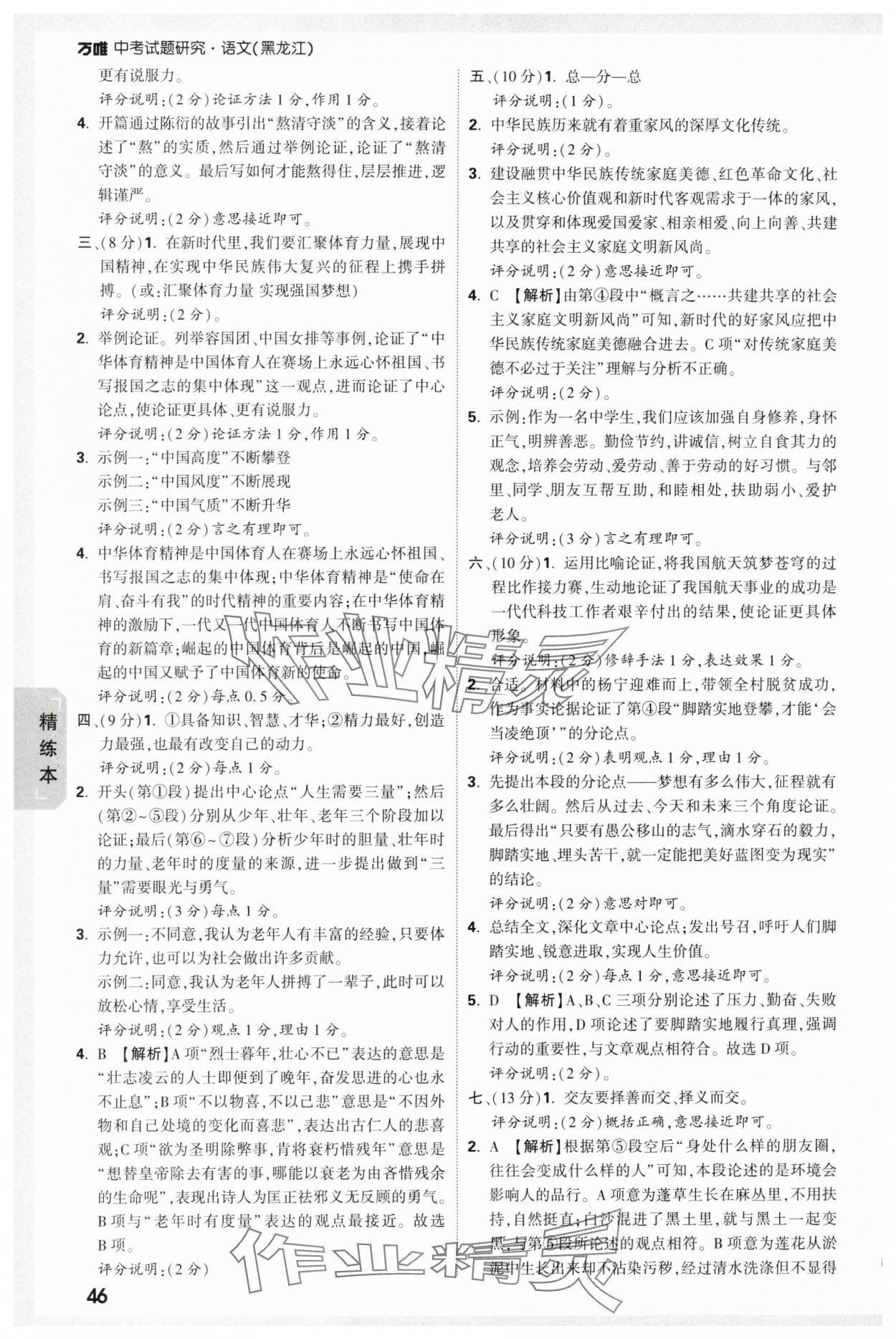 2024年万唯中考试题研究语文人教版黑龙江专版