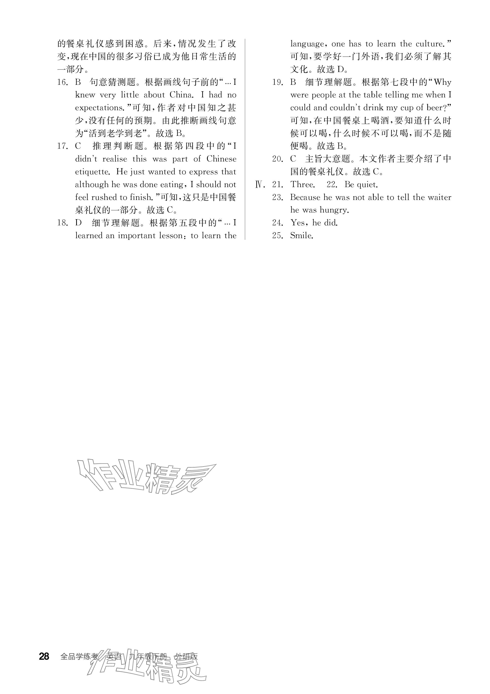 注:目前有些书本章节名称可能整理的还不是很完善,但都是按照顺序排列的,请同学们按照顺序仔细查找。练习册 2024年全品学练考九年级英语下册外研版 答案主要是用来给同学们做完题方便对答案用的,请勿直接抄袭。