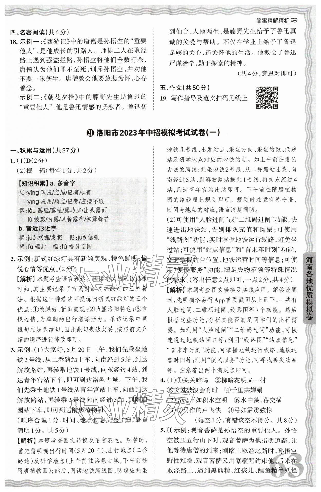 注:目前有些书本章节名称可能整理的还不是很完善,但都是按照顺序排列的,请同学们按照顺序仔细查找。练习册 2024年王朝霞中考真题精编语文河南中考 答案主要是用来给同学们做完题方便对答案用的,请勿直接抄袭。