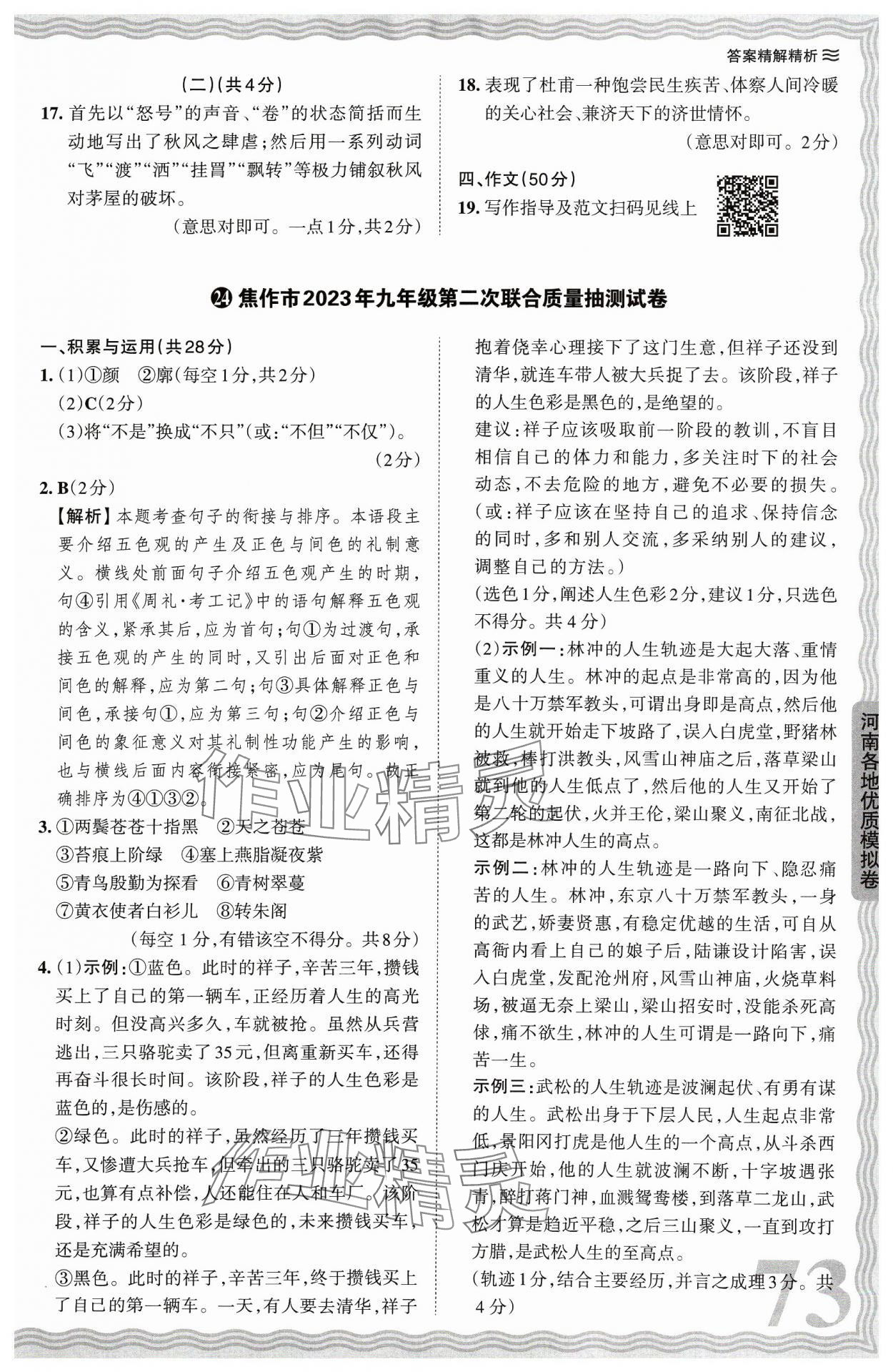 2024年王朝霞中考真题精编语文河南中考