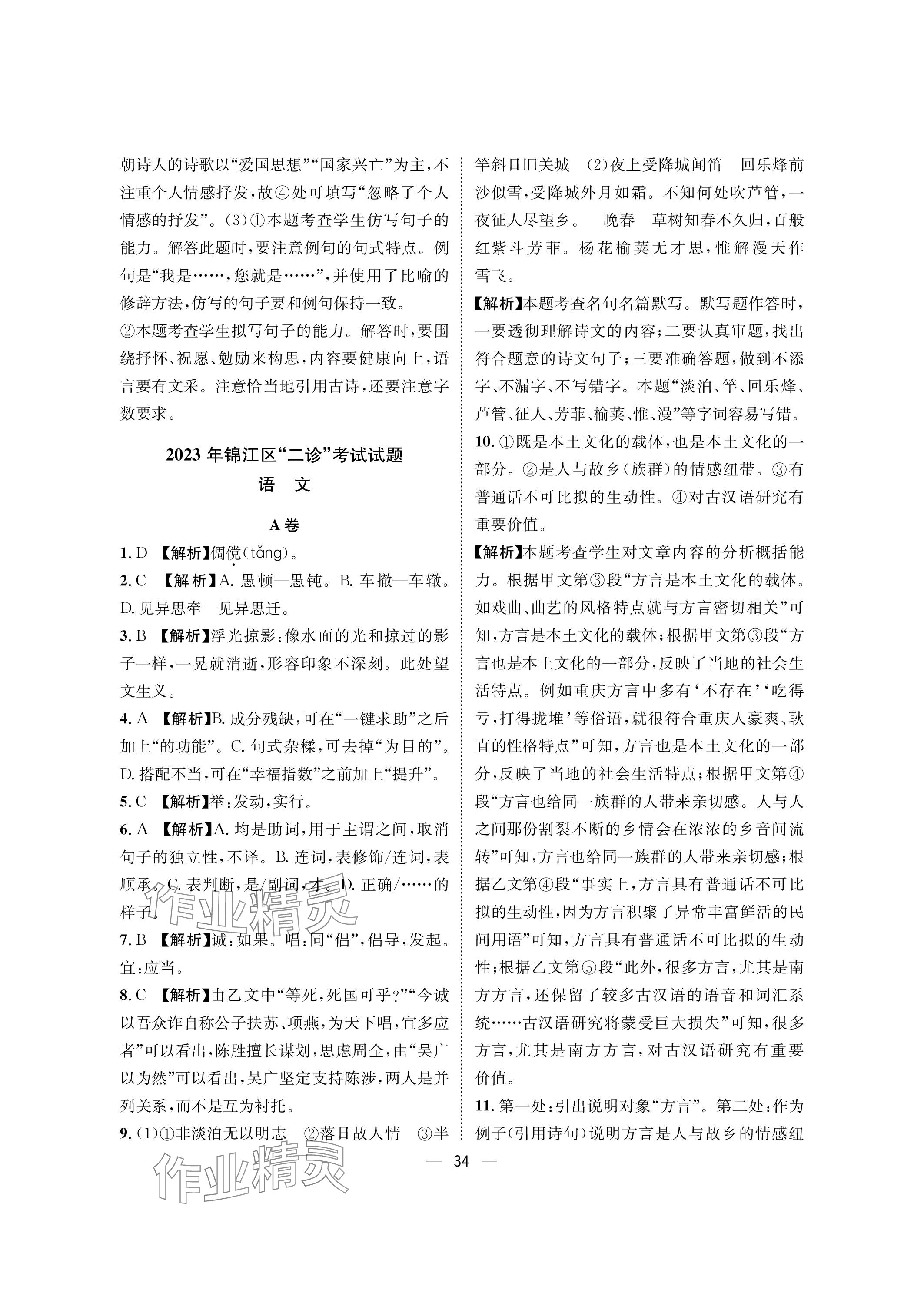 注:目前有些书本章节名称可能整理的还不是很完善,但都是按照顺序排列的,请同学们按照顺序仔细查找。练习册 2024年蓉城中考名校模拟真题汇编语文 答案主要是用来给同学们做完题方便对答案用的,请勿直接抄袭。